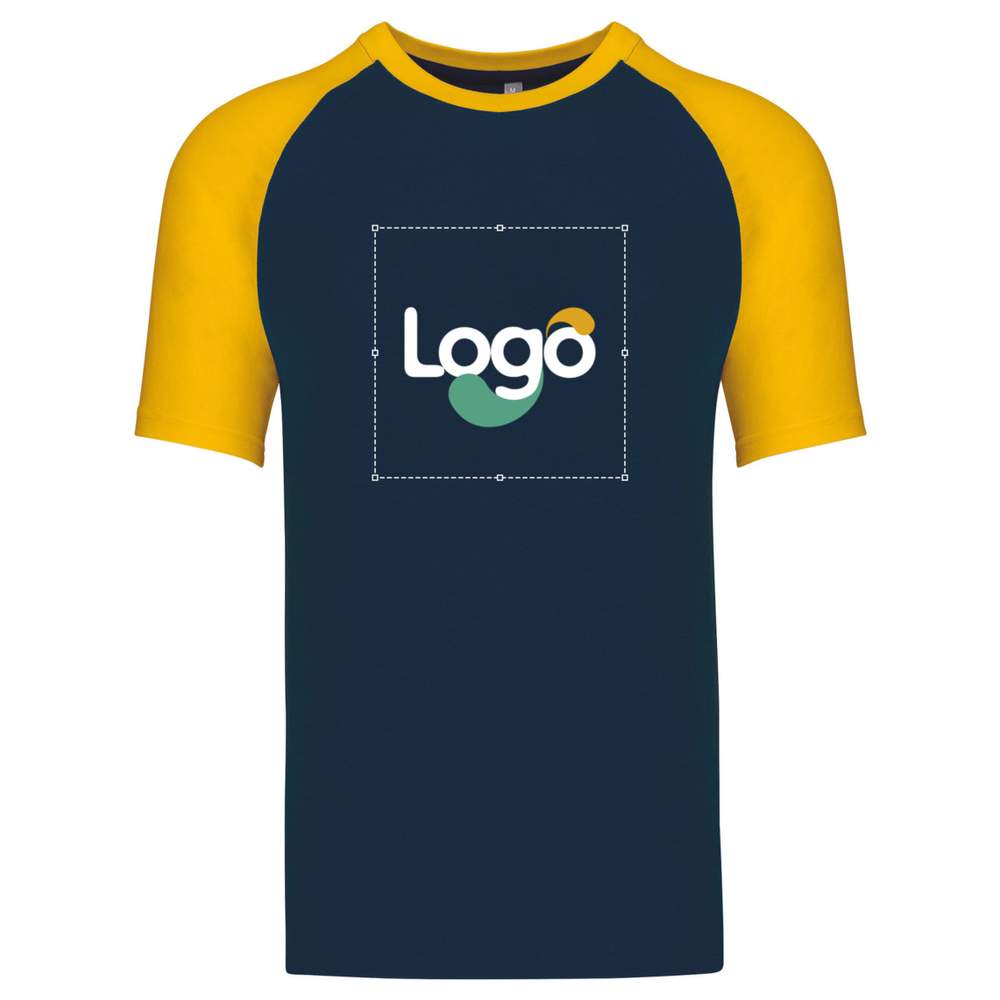 This bicolor baseball t-shirt with short sleeves KARIBAN offers optimal comfort thanks to its raglan cut and 100% cotton material. The Lycra® collar ensures a good fit, while the side slits allow for greater freedom of movement. Its double-needle finish guarantees increased durability. This model is ideal for customization with your logo or visual.