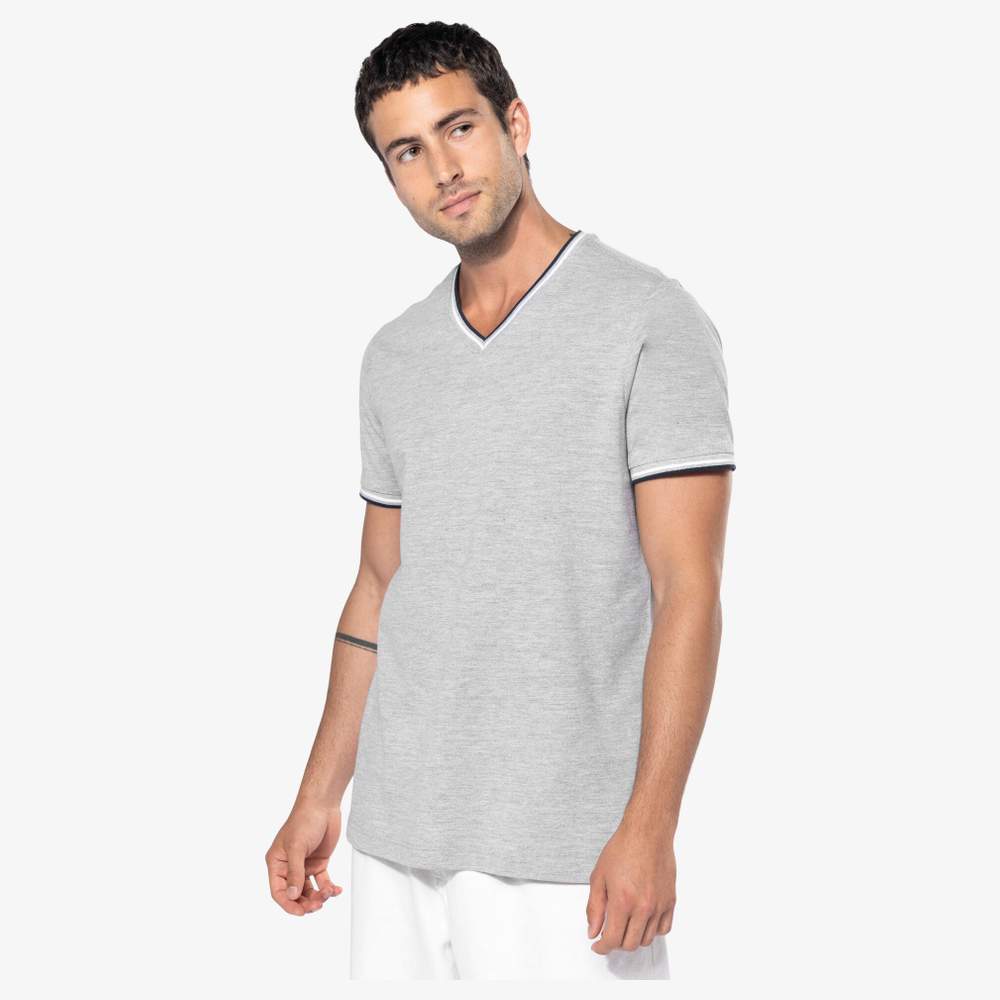 K374 - Men's V-neck pique knit t-shirt k374 customization - oxford_grey/navy/white