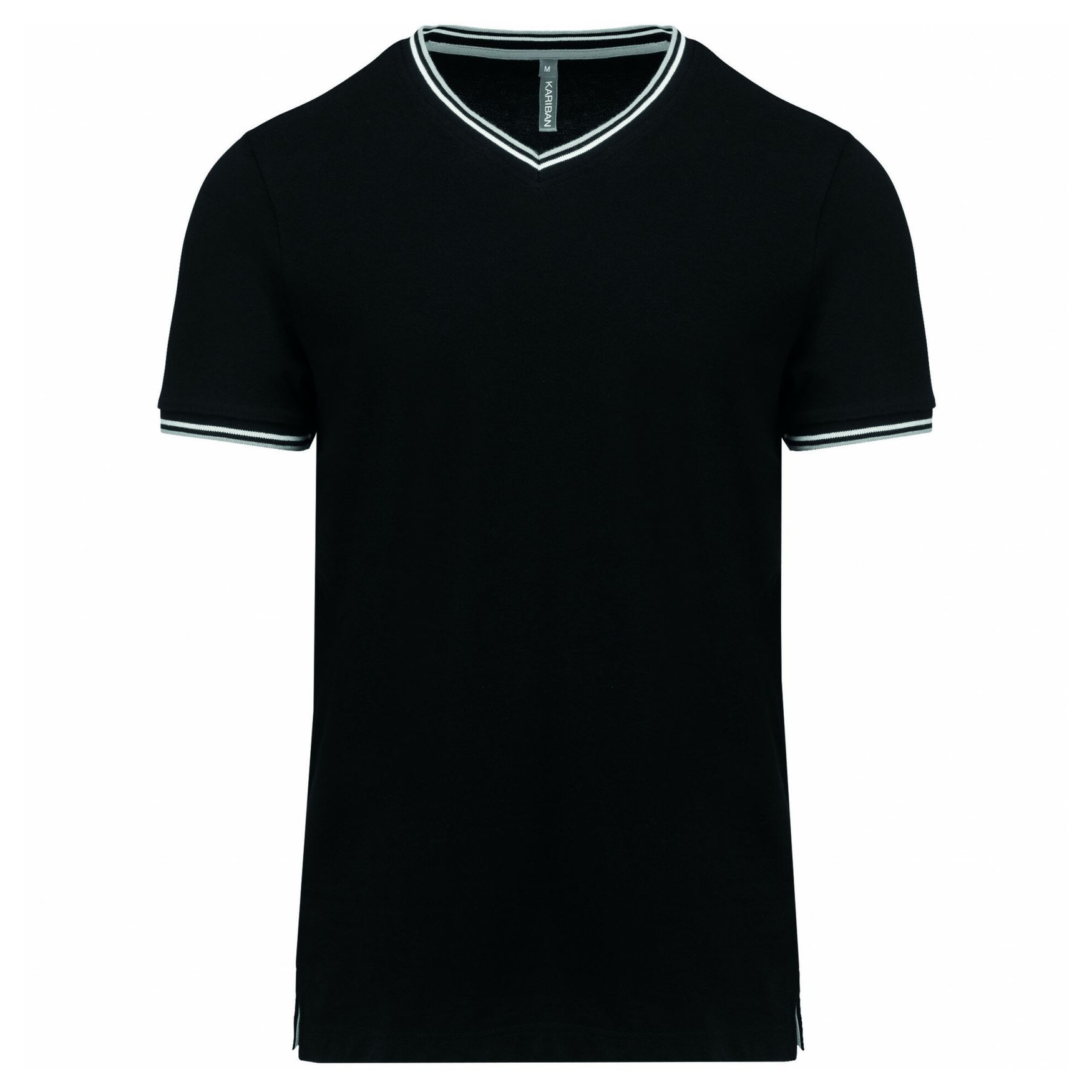 K374 - V-neck pique cotton t-shirt for men k374 - black/light_grey/white