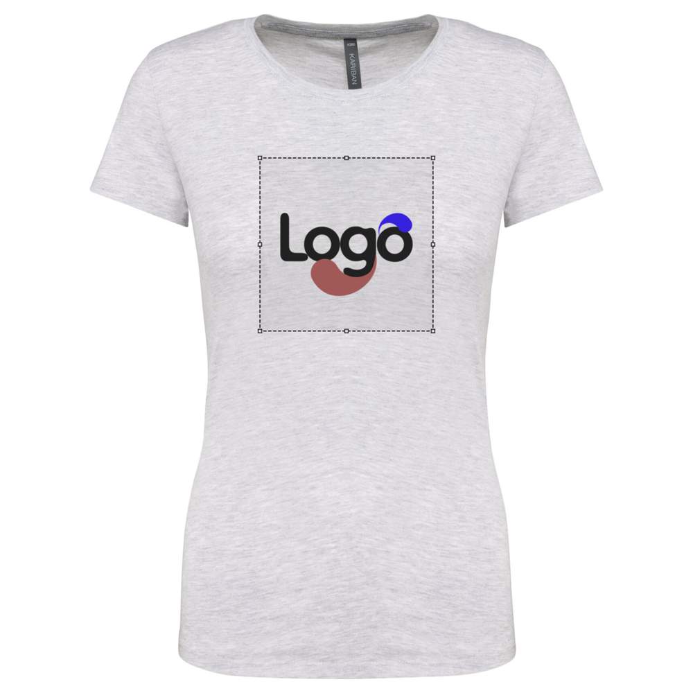 This women's 100% cotton t-shirt offers a fitted cut and optimal comfort. Its contrasting chin strap brings a touch of elegance. Double-needle stitching at the hem of the sleeves and garment ensures increased durability. Ideal for easy and effective customization, this t-shirt is perfect for displaying your logo or visual.