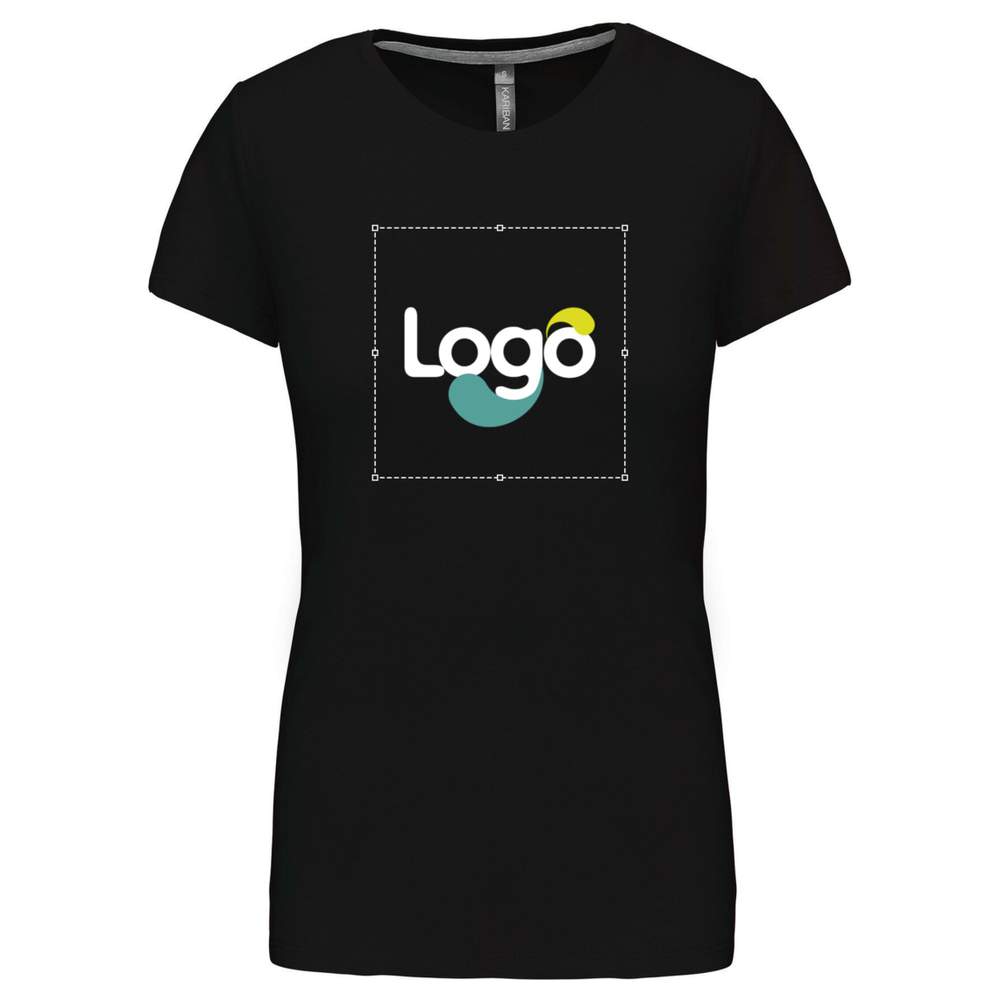 This women's 100% cotton t-shirt offers a fitted cut and optimal comfort. Its contrasting chin strap brings a touch of elegance. Double-needle stitching at the hem of the sleeves and garment ensures increased durability. Ideal for easy and effective customization, this t-shirt is perfect for displaying your logo or visual.