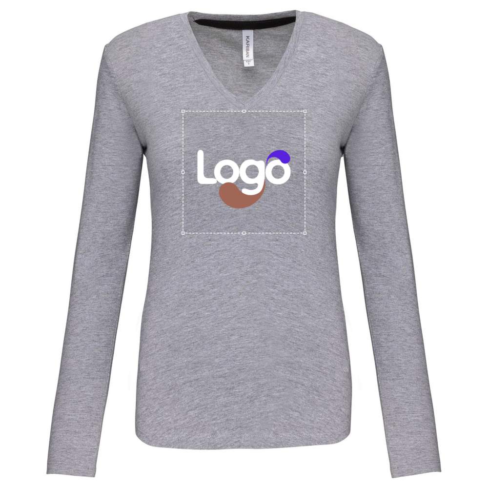Long-sleeved v-neck t-shirt for women k382 customization - Oxford grey