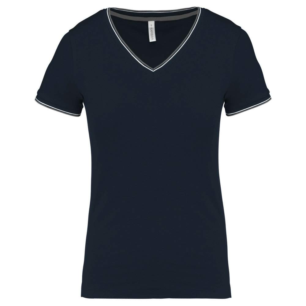 K394 - Women's V-neck piqué knit t-shirt k394 - navy/light_grey/white
