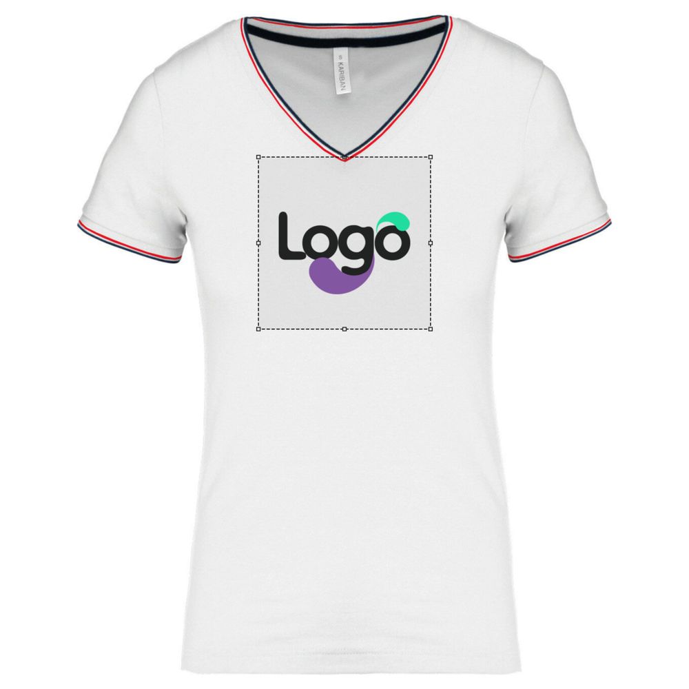 Women's V-neck piqué knit t-shirt k394 customization - White navy red