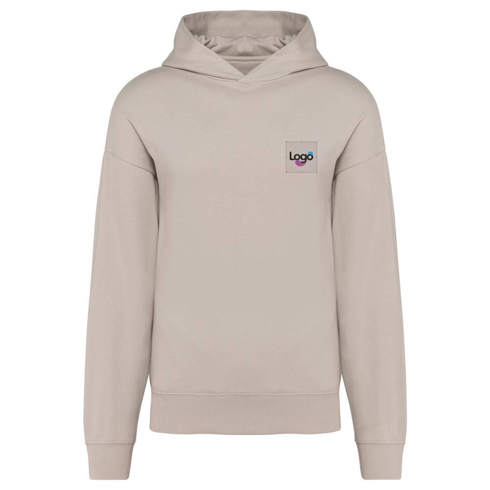Unisex oversized hooded fleece sweatshirt. Oversized fit with dropped shoulders. Brushed fleece for optimal comfort. Carded cotton for unmatched softness. 2x1 ribbed finish for better finishing at the bottom of the sleeves and garment. Hidden pocket with invisible zip in the right side seam. Hood with pinned double layer in cotton. Presence of elastane in the ribbed bottom of the sleeves and garment to prevent the garment from deforming. Chevron-ton-on-ton propreté band. Half-moon interior collar. Double-stitch finish overlapping the bottom of the sleeves and garment. No brand label at the collar, only a size chip to facilitate customization. This sweatshirt is ideal for customization by embroidery or logo printing. Composition: 80% cotton, 20% polyester.
