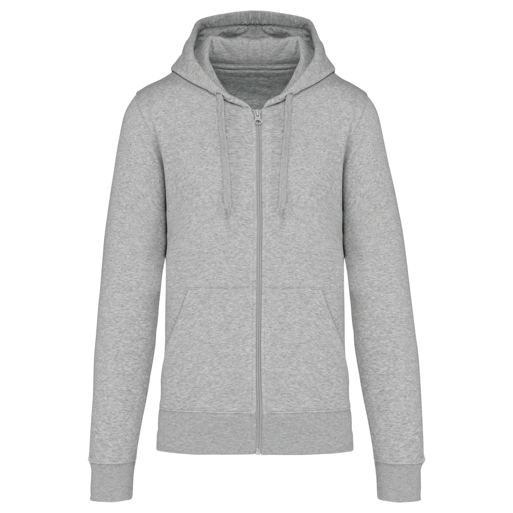 Zipped hooded sweatshirt for men. Eco-friendly model designed from 85% organic cotton and 15% recycled polyester. Brushed fleece LSF (Low Shrinkage Fleece). Combed cotton. Straight cut. Kangaroo pockets. Nylon zip fastening tone-on-tone. Hood lined in 100% cotton. Ribbing 1x1 tubular mount for better finish at the bottom of sleeves and garment. Jersey tone-on-tone clean band and half-moon interior collar finish. Double needle hem on sleeve ends, garment ends and collar.
