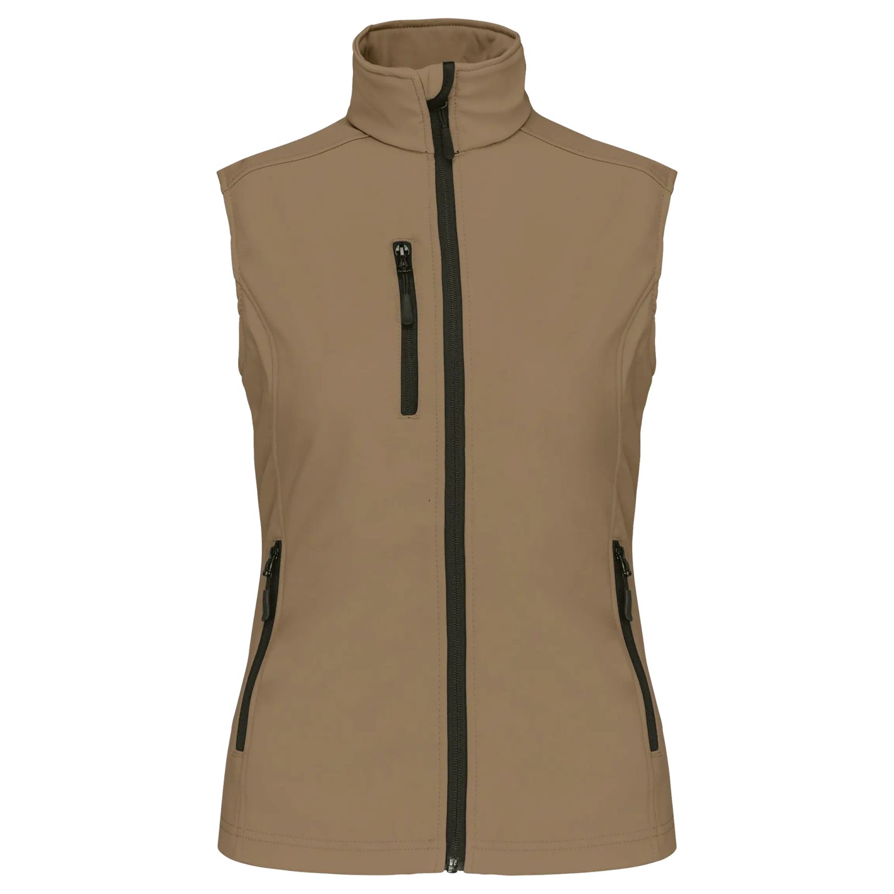 This women's body warmer is made of softshell elastic polyester, offering comfort and freedom of movement. It features a breathable and waterproof 3-layer bonded fabric for effective protection against the elements. The design includes a zip closure, two practical front zip pockets, and one right-side chest zip pocket.