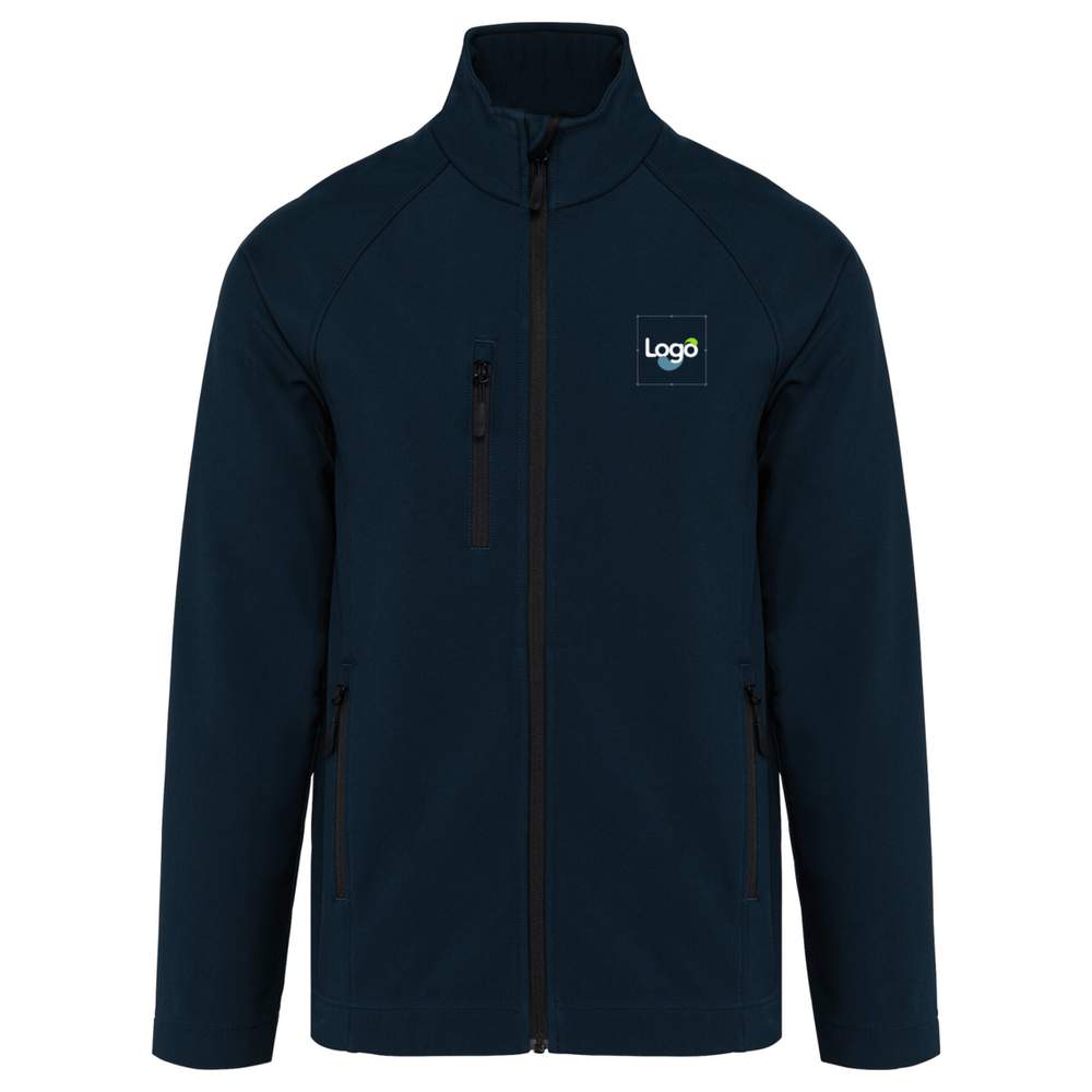 Unisex 3-layer eco-friendly softshell jackets. Fitted cut. 2 zipped side pockets with pull tabs + 1 zipped chest pocket with pull tab. Interior col fastening link. Pocket bags serving as inner pockets. Zipped closure with pull tab. Double stitching at bottom of garment. Customization possible with embroidery. Topgreen ® 3-layer laminated fabric impermeable 8000 mm and breathable 3000. Exterior: 100% polyester. Interlayer: impermeable and breathable inner membrane. Interior: 100% polyester microfleeceComposition: 100% recycled post-consumer polyester.