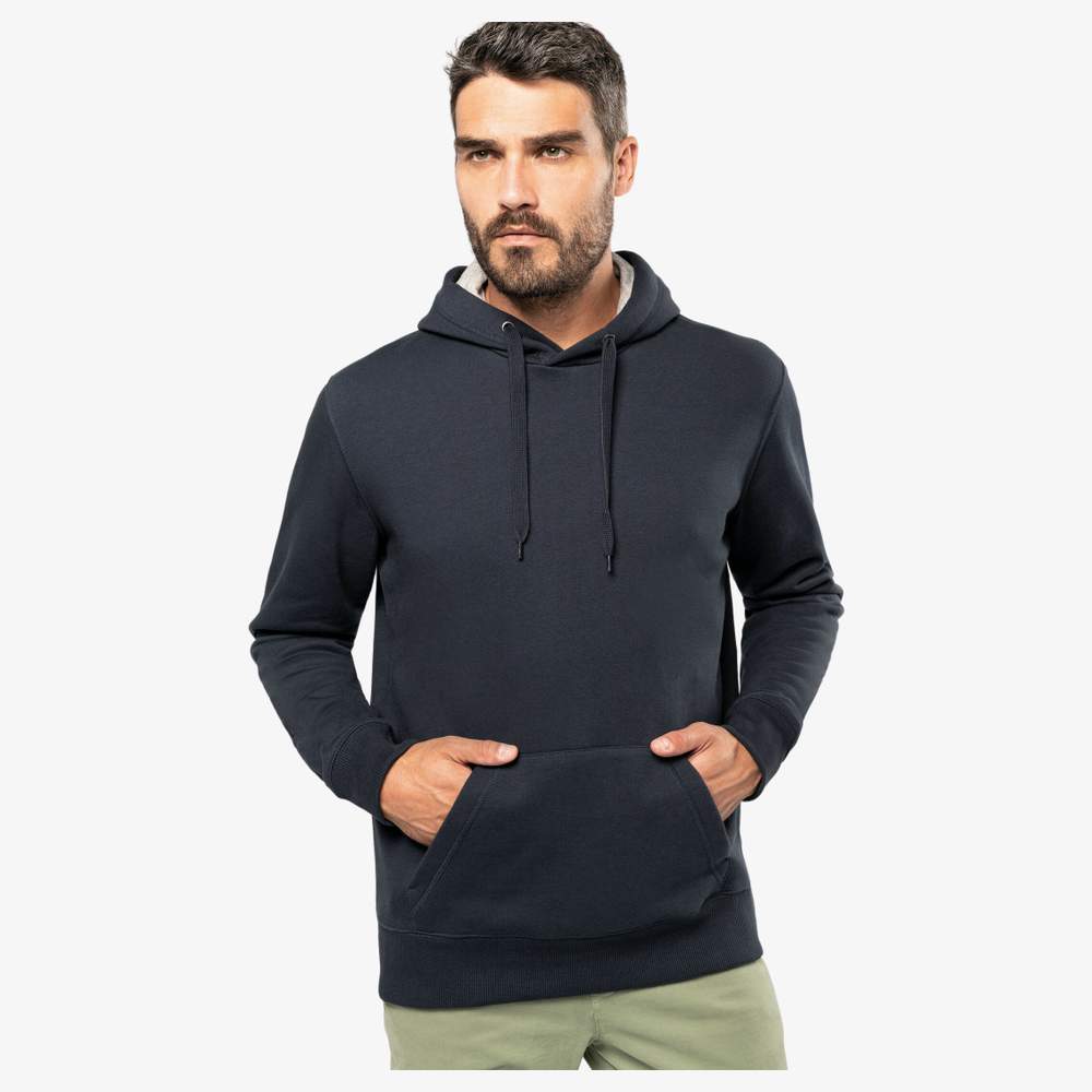 This unisex hooded sweatshirt KARIBAN k443 is made of brushed fleece pre-shrunk 80% cotton / 20% polyester. It offers optimal comfort and excellent wear after washing thanks to its silicone treatment. The contrasting neckband and the contrast lining inside the hood add a touch of modern style. Practical, it is equipped with a kangaroo pocket and hemmed finishes at the bottom of the sleeves and garment. This model is customizable by embroidery or by adding your logo.