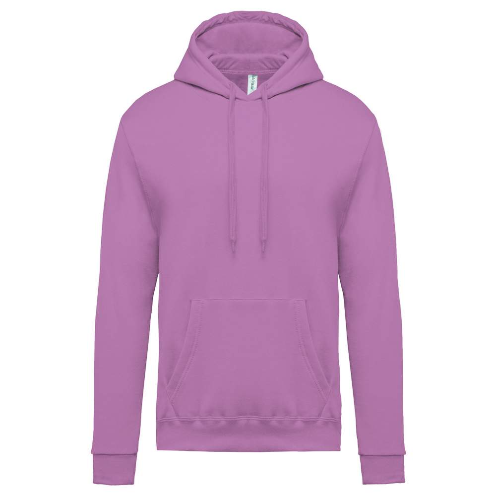 This men's hooded sweatshirt is designed with brushed fleece for optimal comfort. Its tubular cut ensures a modern and casual fit. It features mounted sleeves and a lined hood with matching drawstring. The kangaroo pockets provide practical space for storing small items. The ribbed finish at the cuffs and hem of the garment provides comfortable support and a neat look.