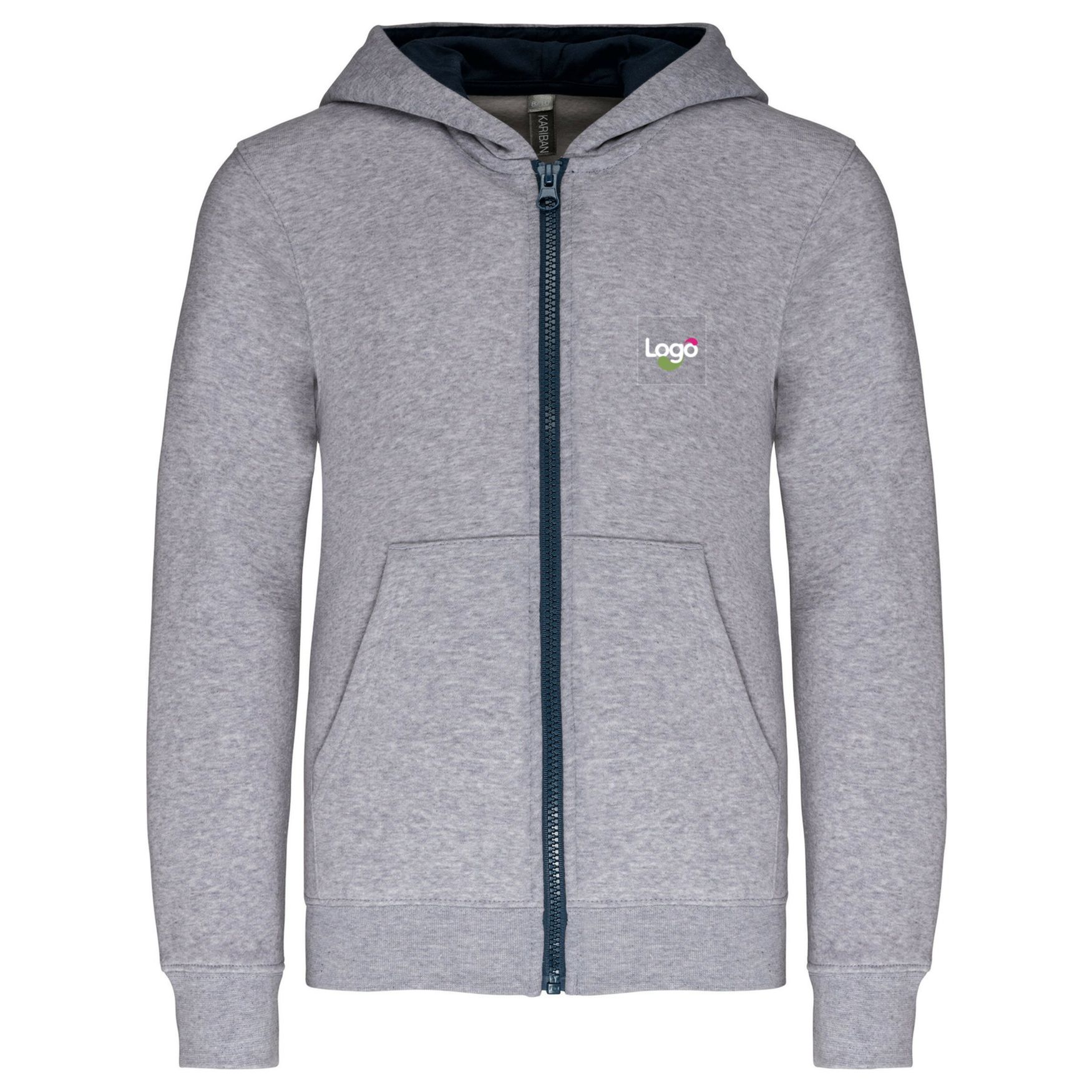 Zipped hoodie child k486 customization - Oxford grey navy