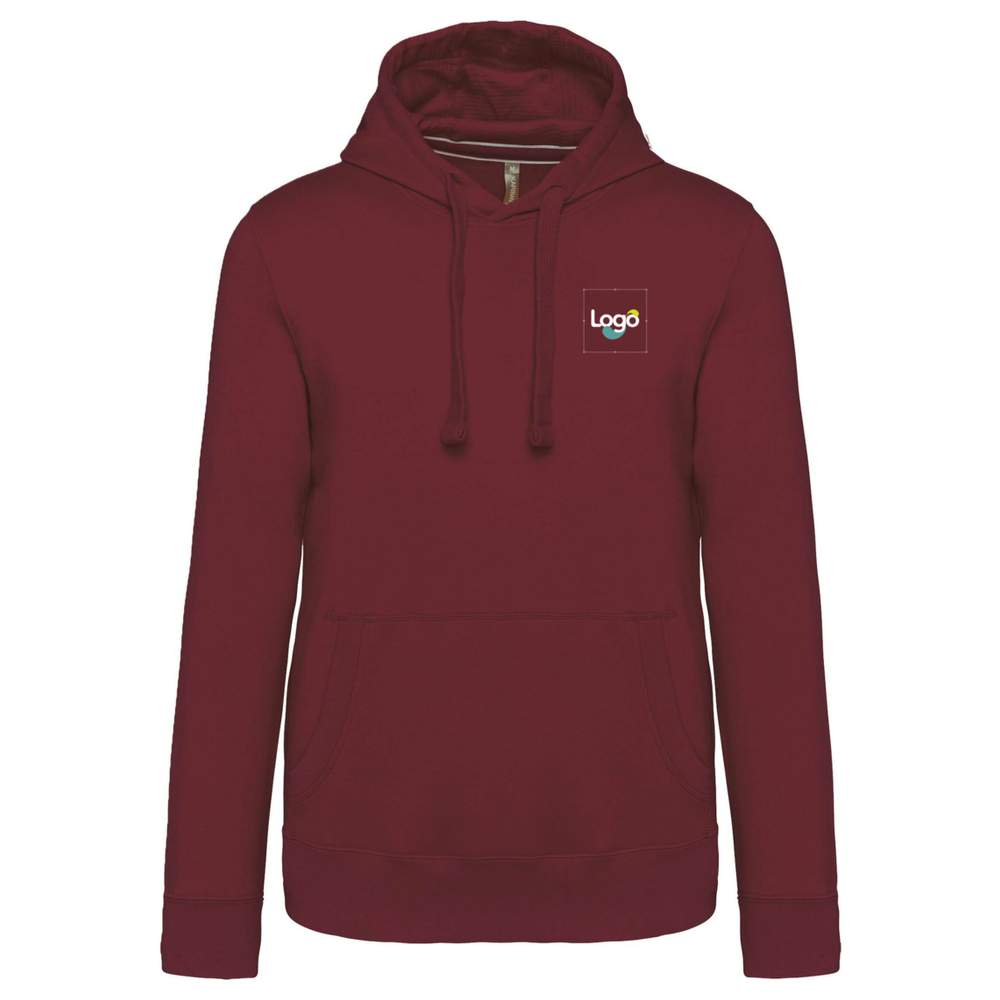 This men's hoodie KARIBAN is made of brushed fleece for optimal comfort. It is composed of 80% cotton and 20% polyester, with an LSF (Low Shrinkage Fleece) treatment to limit shrinkage. The fleece is brushed with 3-ply combed cotton for increased softness. The set-in sleeves and contrast neckband (Navy for the Oxford Grey color and Oxford Grey for all other colors) add a stylish touch. The hood lined with honeycomb fabric with drawstring provides additional protection. The kangaroo pockets are practical for storing small items. The ribbed cuffs and hem of the garment provide a comfortable fit. This sweatshirt is ideal for customization by embroidery or printing your logo, thus creating a unique personalized garment.