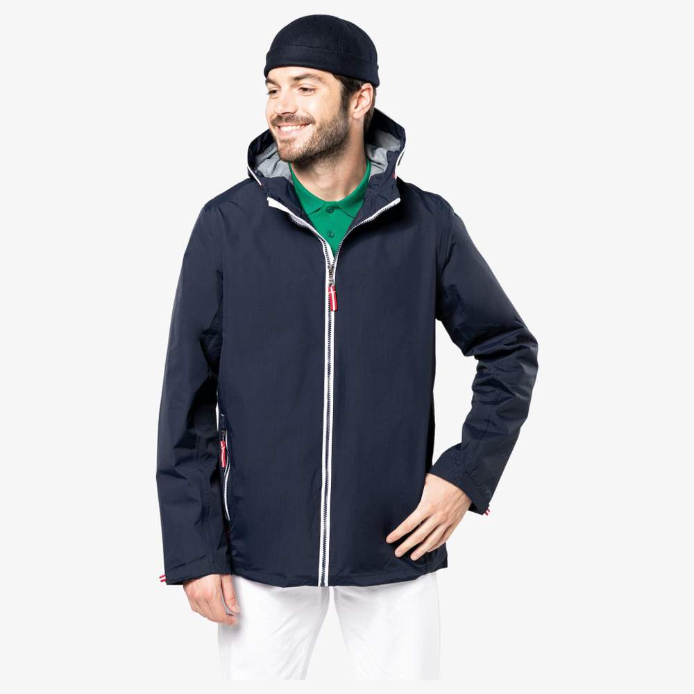 This unisex waterproof jacket offers effective protection against bad weather thanks to its breathable design and waterproof heat-sealed seams. It features a zipper closure, two practical zipper pockets, and an inner pocket for storing your personal items. The contrasting polyester lining adds a touch of style, while the mesh-lined and adjustable hood ensures optimal comfort. This jacket is designed to be customized, allowing you to add your logo or any other visual for effective communication during your events. It has a customization zipper at the bottom and chest for easy integration of your graphic elements.