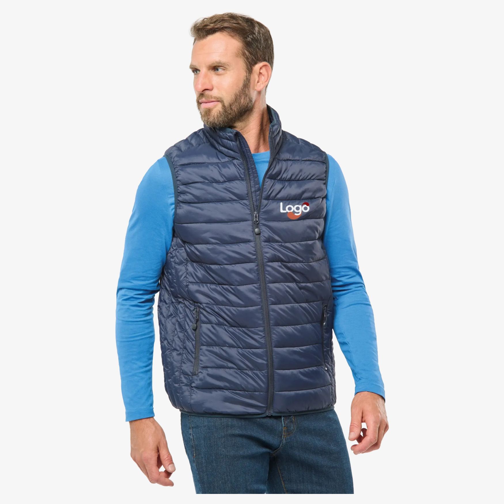 This lightweight sleeveless jacket for men is made of 100% polyamide with a polyester inner lining. It offers an excellent compromise between warmth and lightness, and can be easily compressed into its storage bag. It features two practical zip pockets and a contrasting interior (except for navy).