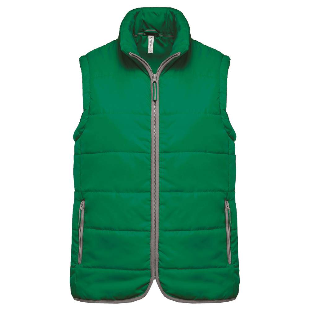 Quilted bodywarmer made of ripstop polyester with acrylic coating and internal padding in polyester. It offers a modern and comfortable fit for everyday use. This bodywarmer features two external zipped pockets as well as an internal secure pocket with a hook-and-loop closure. A contrasting grey zip and a grey contrast band adorn the front, pockets, and bottom of the garment, adding a touch of style. It also includes a heart-side zip and a zip at the bottom of the garment for easy access to customization.