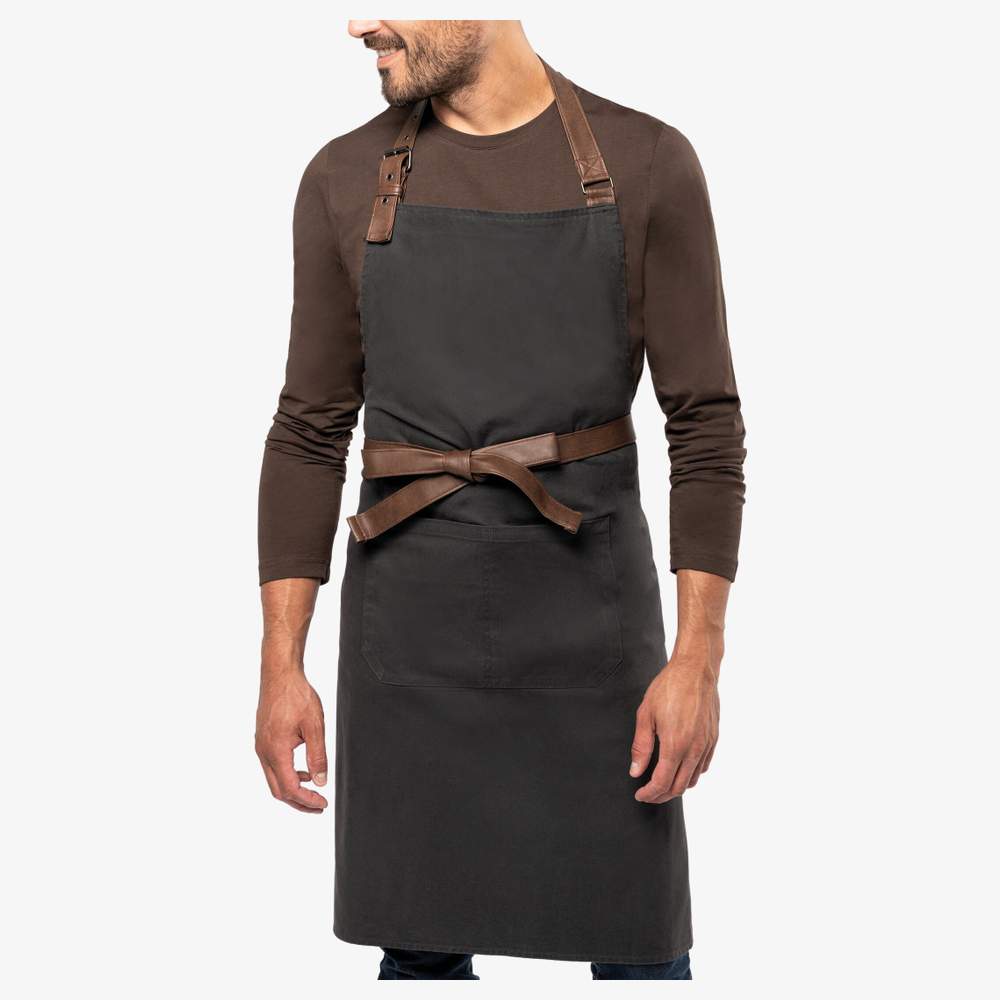 This cotton canvas apron offers a vintage and authentic style. Designed for optimal comfort, it features an adjustable metal buckle with eyelets to adjust the length of the apron. The fabric straps ensure increased durability. It is equipped with a large front pocket divided into two compartments, ideal for storing essential tools and accessories. Its dimensions are H 90 cm x L 76 cm, with a pocket of H 20 cm x L 31,5 cm. This product has undergone specific treatment to give it a unique aged look. Each piece shows color variations, testifying to its authenticity.