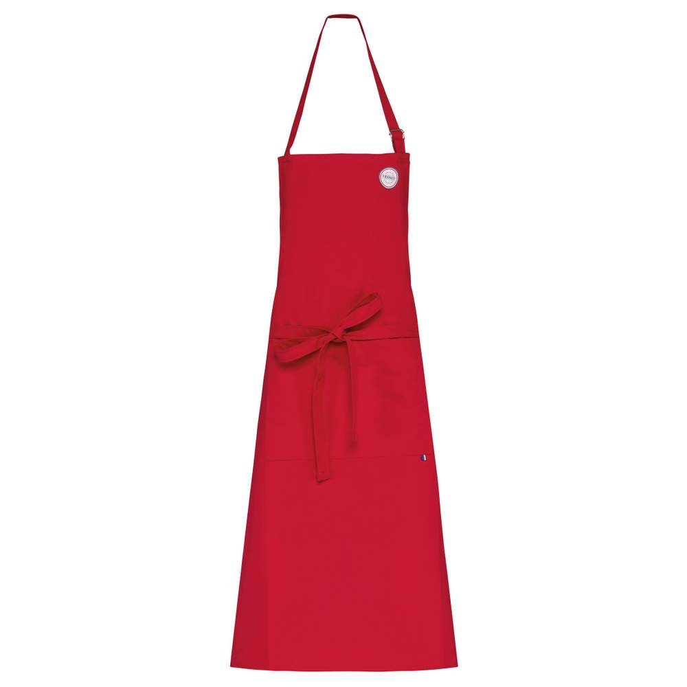 Apron Origin France Guaranteed, designed for optimal comfort and versatile use. Its adjustable length allows for personalized wear. It features a woven label with the French flag on the front pocket, attesting to its origin. Made in Brittany, this apron combines quality and French craftsmanship.