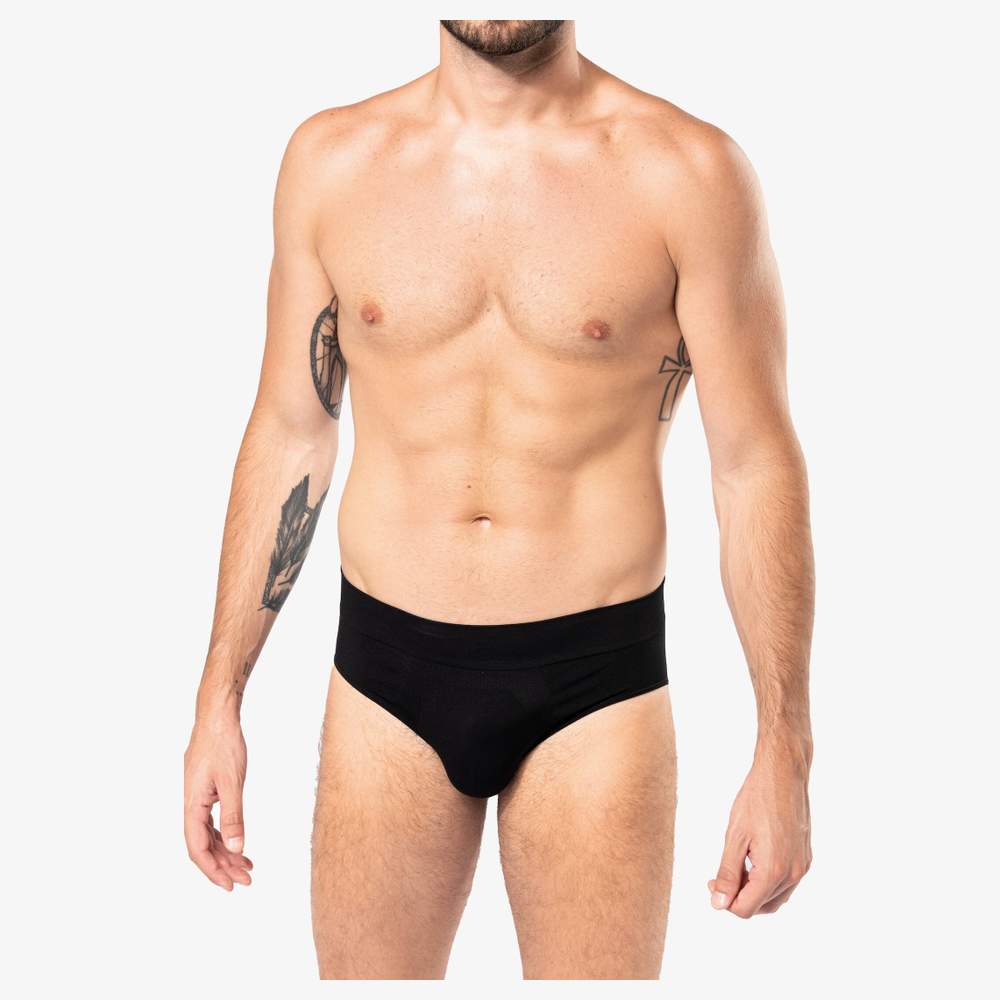 Seamless slip for men, designed for optimal comfort. Its molded fit hugs the body while ensuring freedom of movement. The stretch waistband, combined with an invisible seam, provides comfortable support. The Tear Away label allows for easy removal to avoid irritation. This slip is made from eco-friendly materials, including pre-consumer recycled polyamide and Q-NOVA® yarn.