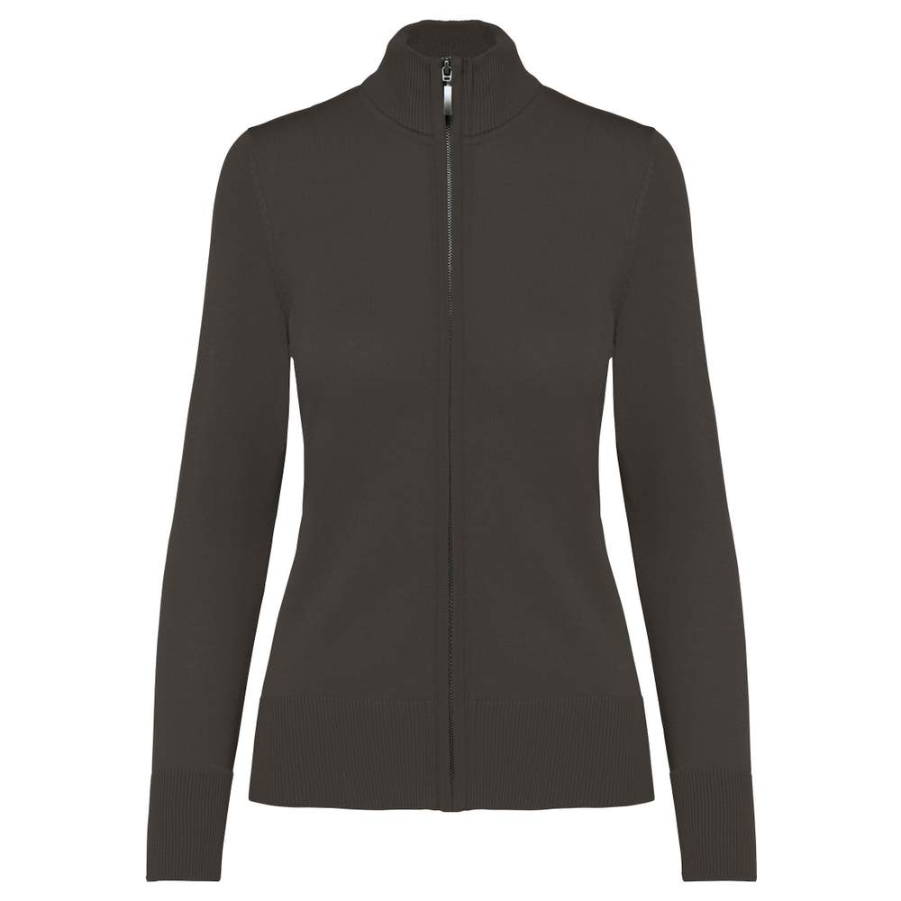 This zipped cardigan for women offers optimal comfort thanks to its composition of 50% cotton and 50% acrylic. Its fitted cut hugs the shapes for a flattering silhouette. The double-layered turtleneck adds a touch of elegance, while the smoked metal zipper ensures secure closure. The neckband contributes to the durability of the cardigan.