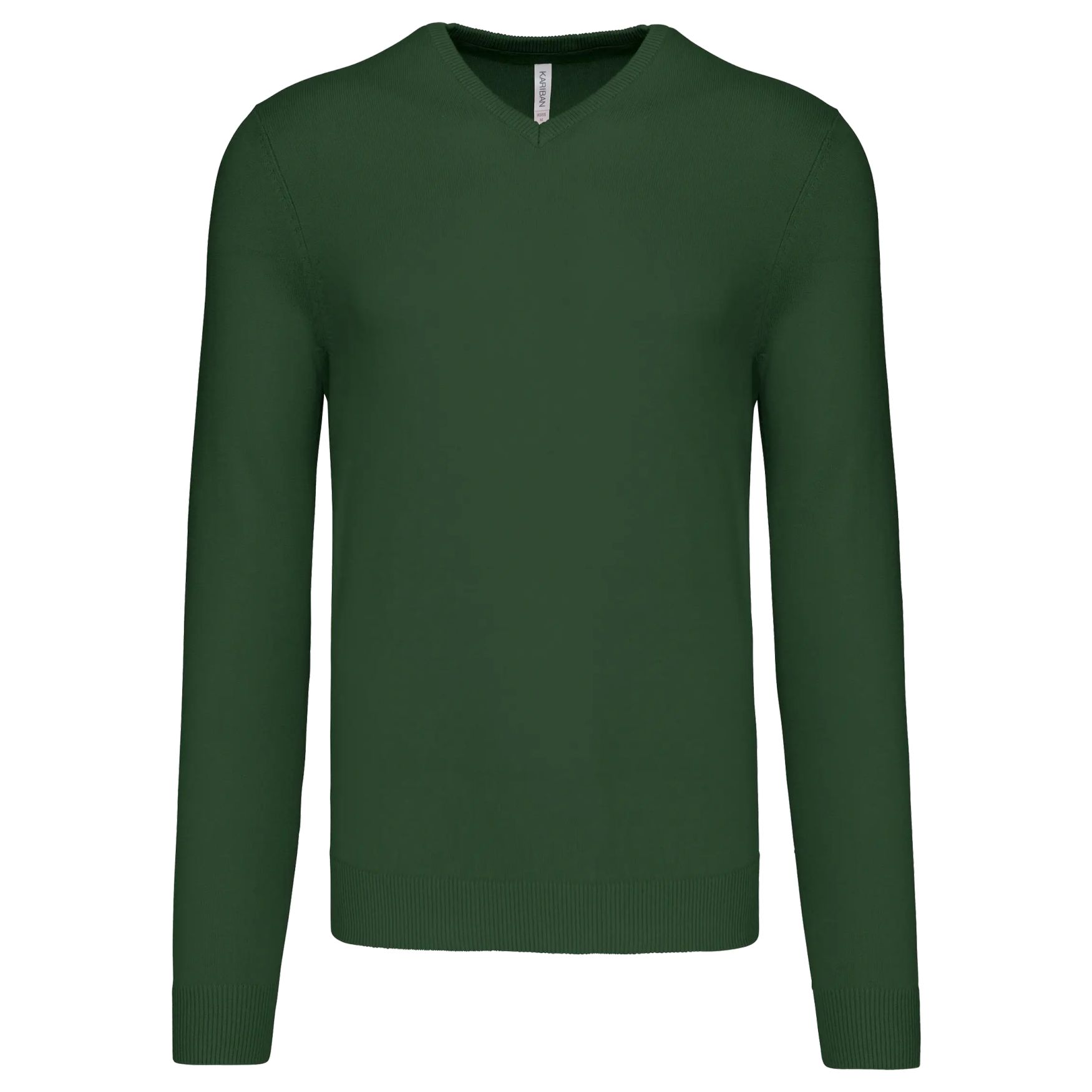 V-neck pull for men Cotton acrylic pull k965 - Forest green