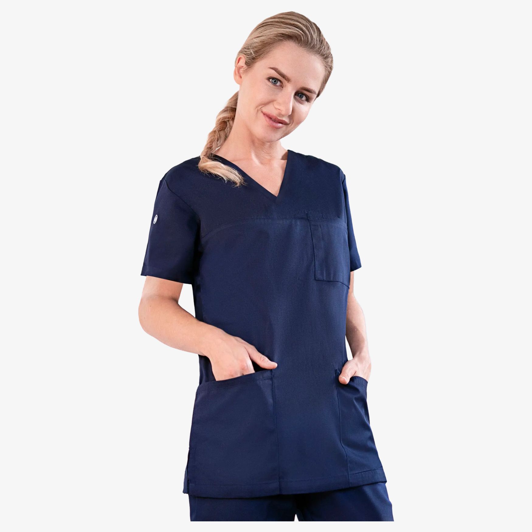 The Essential Women's Tunic is a short-sleeve tunic blouse with a V-neck and a slightly fitted cut. Suitable for use in the healthcare and beauty sectors.