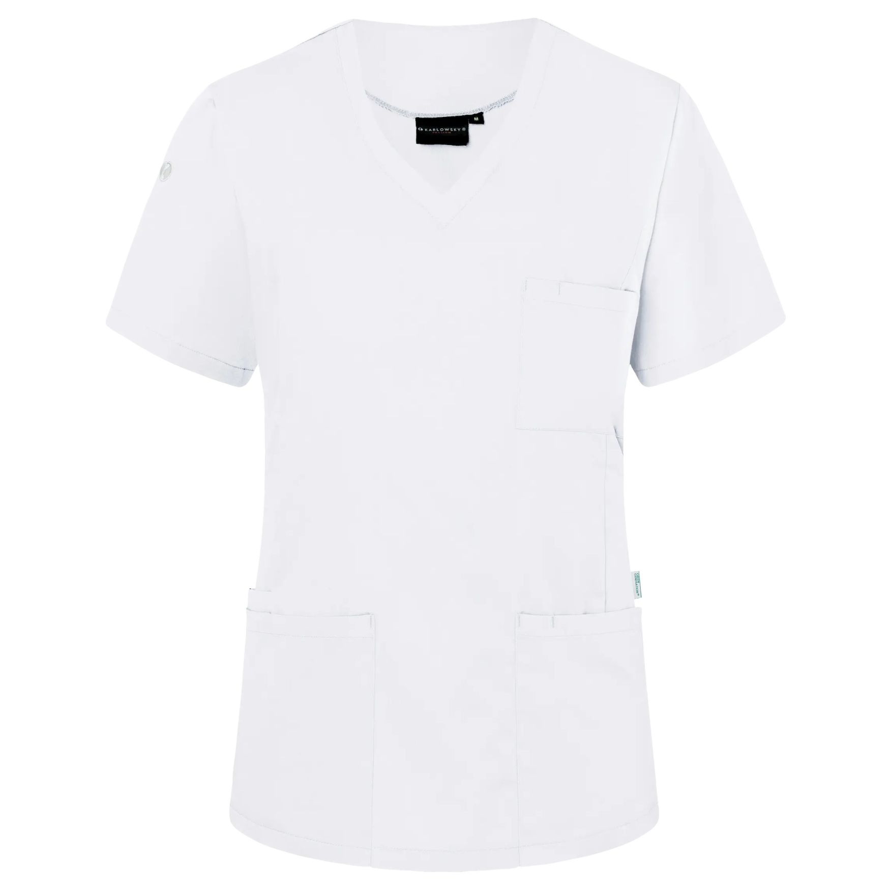 The Essential Women's Tunic is a short-sleeve tunic blouse with a V-neck and a slightly fitted cut. Suitable for use in the healthcare and beauty sectors.