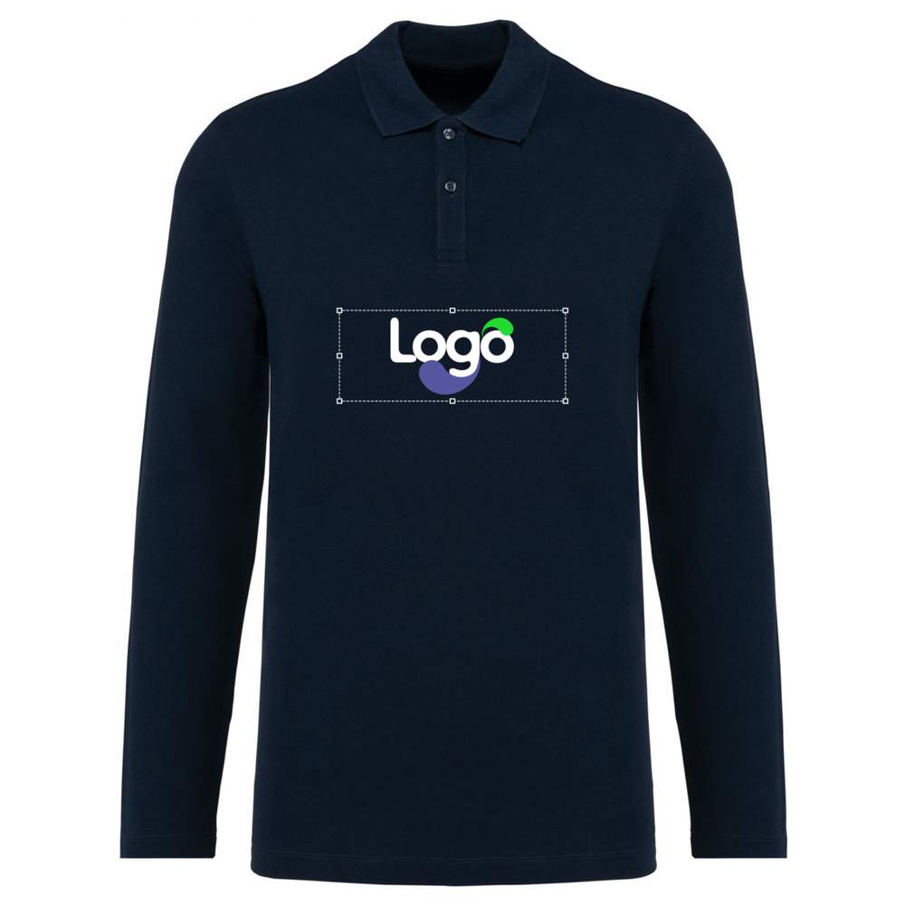 Long-sleeve polo shirt for men, made of Supima® cotton pique knit. This fabric offers great finesse and a soft, silky touch. The polo features a ribbed collar, a ton-on-ton neatness strip inside the collar, and a two-button placket in ton-on-ton. It has a reinforced shoulder seam with a silicone strip, and a double-stitch hem at the sleeve ends and bottom of the garment. The absence of a brand label on the collar is compensated by a discreetly sized chip. This polo is ideal for customization with embroidery, allowing you to add your logo or visual for a unique and professional look.