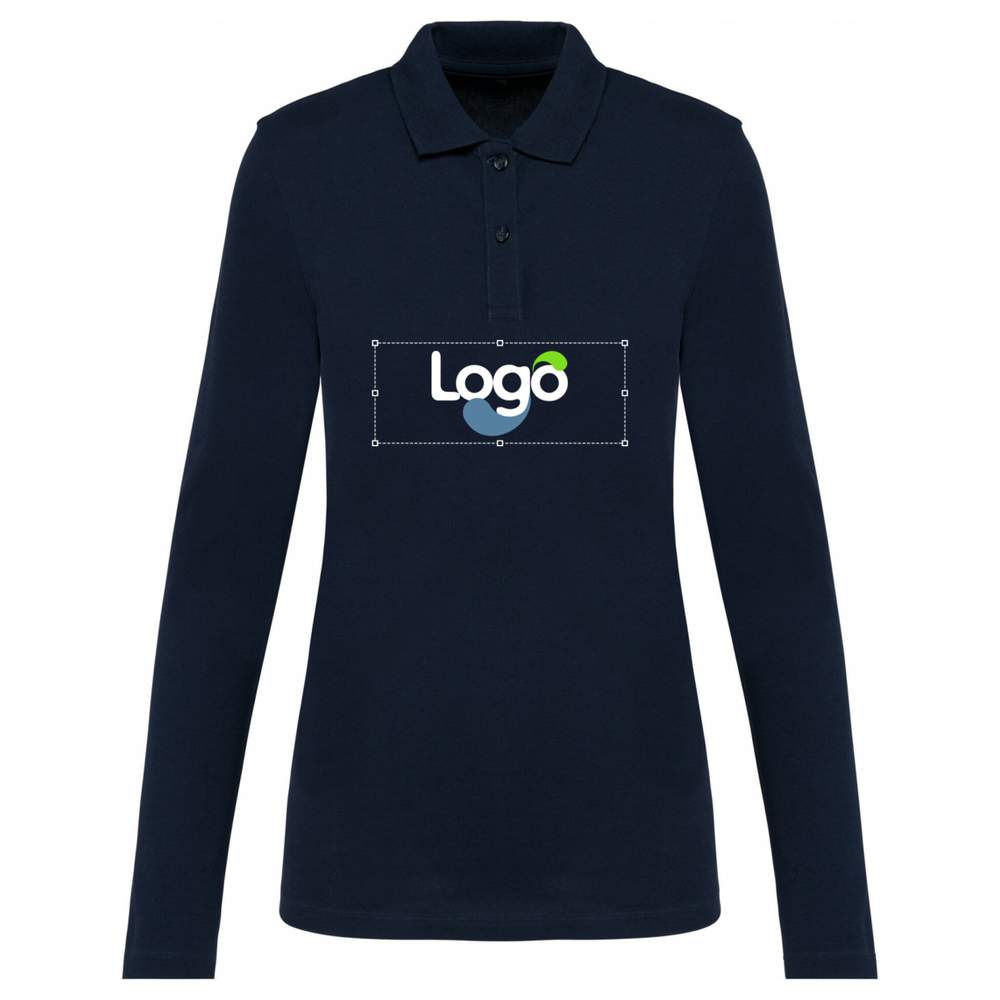 Long sleeve polo for women, made of Supima® cotton pique knit. This fabric offers great finesse and a soft, silky touch. The polo features a ribbed collar, a matching inner neckband, a two-button placket, a reinforced shoulder seam with a silicone strip, and a double-stitch hem at the sleeve and bottom. The absence of a brand label at the collar is compensated by a discreetly sized chip. This polo offers optimal comfort and timeless elegance. Possibility of customization by embroidery for a unique look. Composition : 95% cotton, 5% elastane.