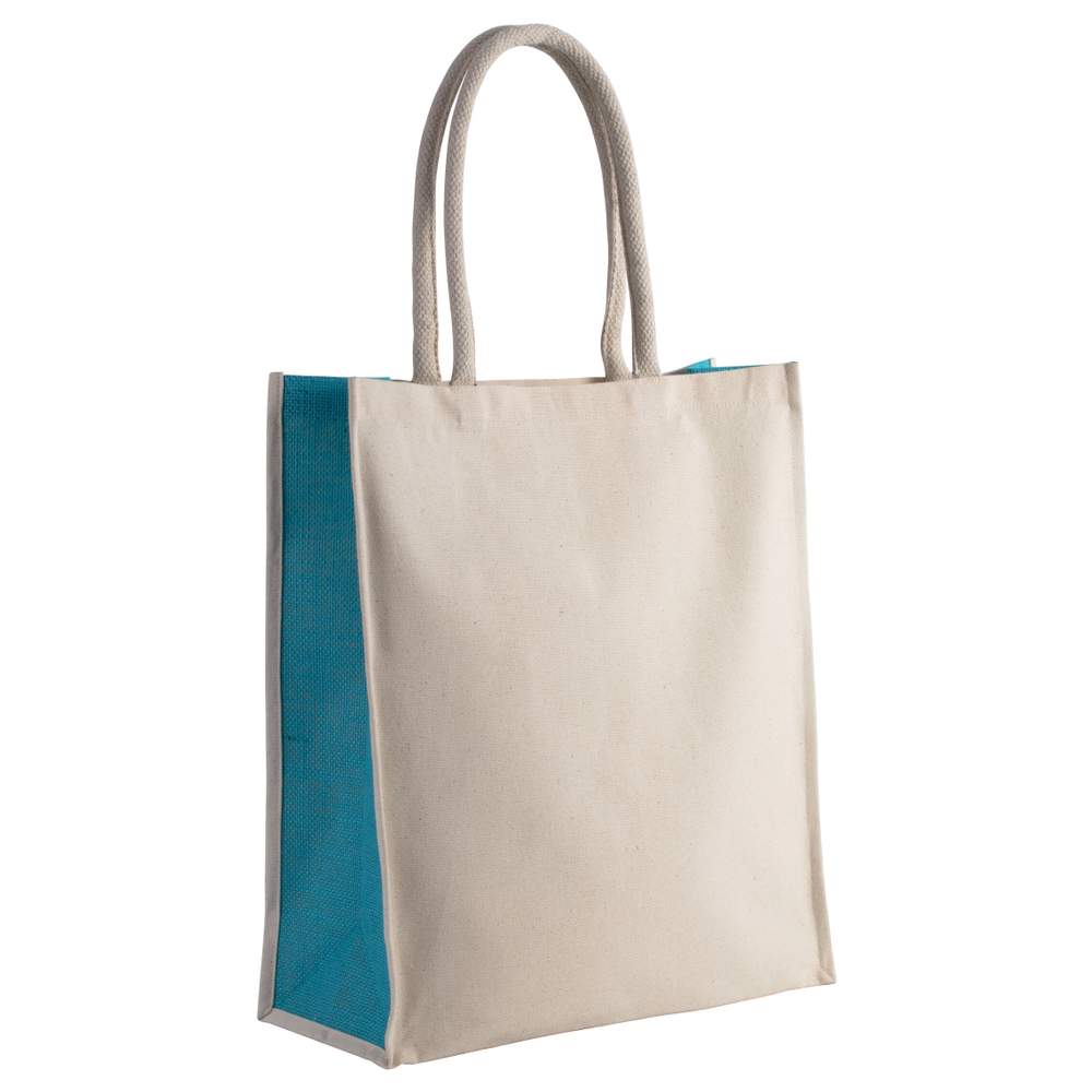 and Jute Tote Bag - ki0253 - Natural turquoise