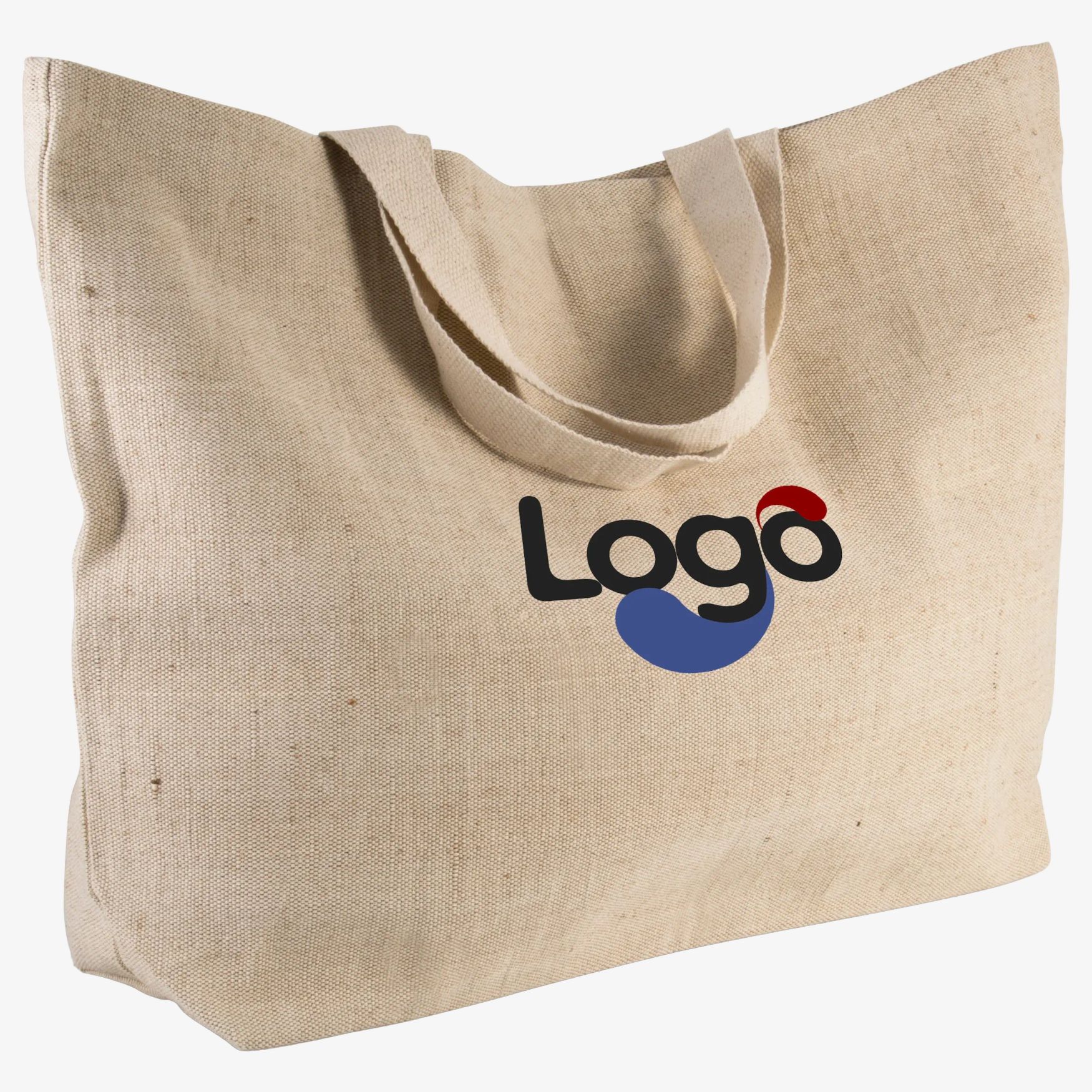 Large tote bag in canvas and cotton with bellows and contrasting handles of 55 cm. The juco thread gives the bag a rustic weave. Dimensions: 72x15x48 cm. This bag offers a large capacity for transporting various items. It is designed for everyday use and can be customized with embroidery to meet your specific needs.