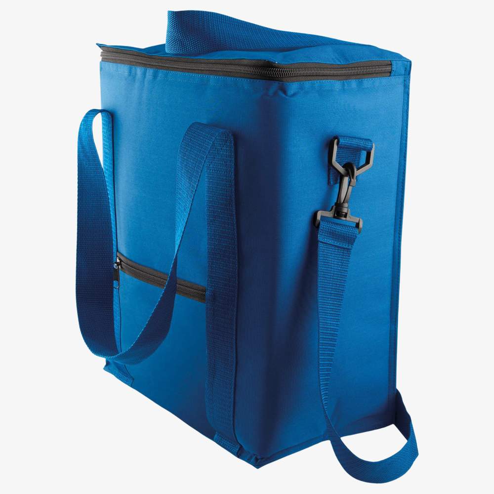 Insulated bag made of polyester. It is equipped with an adjustable and removable shoulder strap for easy transport. A front zip pocket offers additional storage space. This accessory is designed to maintain the temperature of food and drinks for a certain time.