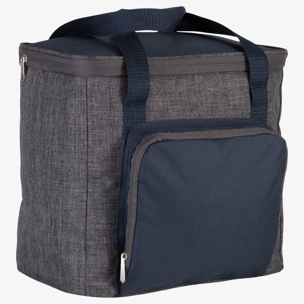 Insulated bag made of polyester 600D. This bag offers a practical solution to maintain the temperature of its contents. It features a front zippered pocket, providing easy access to small items. The handles and contrast pocket add a visual touch. This bag can accommodate 500ml bottles and cans. Designed for everyday use, this insulated bag is a useful accessory for various occasions.