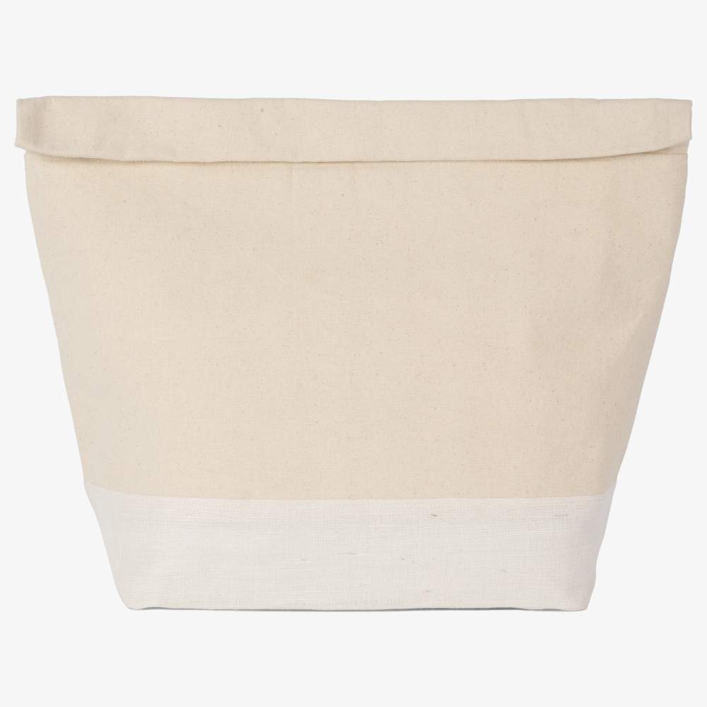 Insulated bag designed to maintain the temperature of food and drinks. Its roll closure ensures good thermal insulation and secure closure. Its straight shape facilitates storage and transportation. This bag is available in different dimensions to suit various uses. It is made from cotton, a durable and environmentally friendly material.