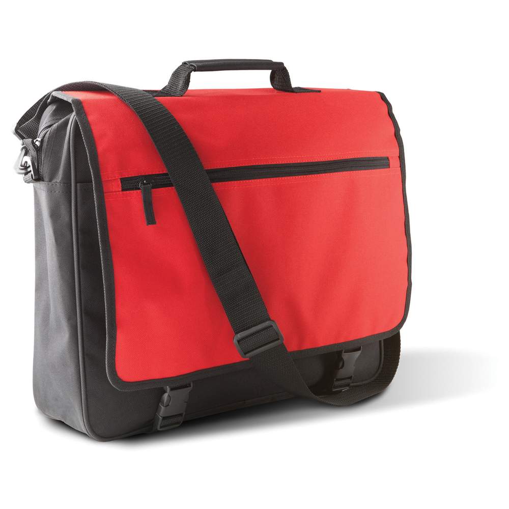 Polyester 600D document case with PVC coating. This model is designed to facilitate the transport of documents. It features a flap with a front pocket and a secure buckle closure. An interior multifunction pocket provides additional storage space. The shoulder strap is removable and adjustable for optimal comfort.