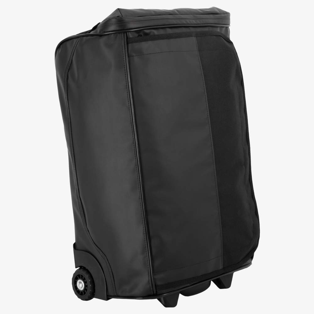 Polyvinyl chloride and polyester cabin trolley bag. Designed with waterproof materials with a watertight zipper. It features a side shoe pocket and a large main compartment with an internal mesh pocket. Equipped with a top and side carrying handle, this bag is designed with protective reinforcements at the corners and protective material at the bottom and back. Its semi-rigid bottom integrates a plastic handle serving as a foot.