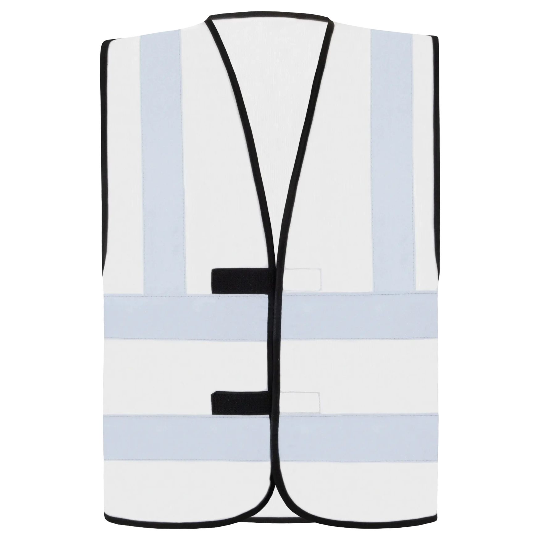 Safety vest with two 5 cm reflective bands surrounding the torso, and two vertical bands on each shoulder. Self-adhesive closure. Individually packed in a bag.
