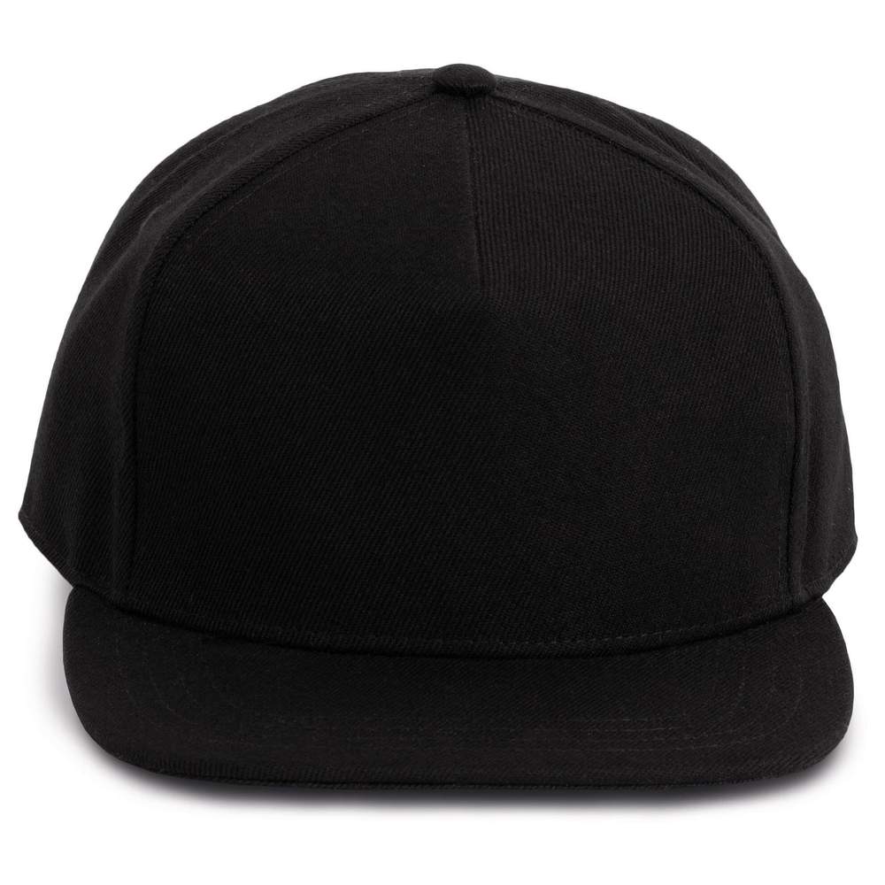 Snapback cap with 5 panels made of 100% polyester. Straight visor and high profile. Equipped with a plastic adjustment tab. Possibility of customization by embroidery.