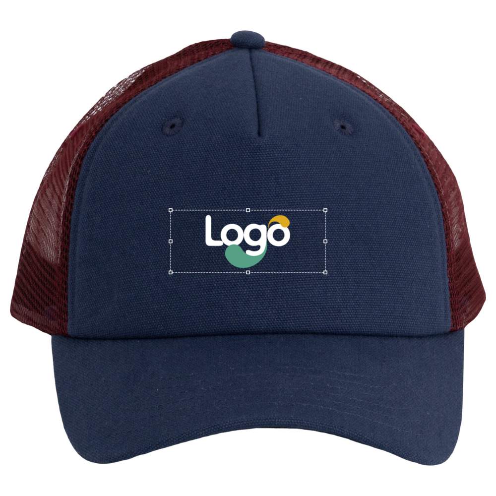 5-panel trucker cap in cotton and polyester. Front panels and visor in cotton canvas, and polyester mesh. Adjustable strap. Possibility of customization by embroidery.