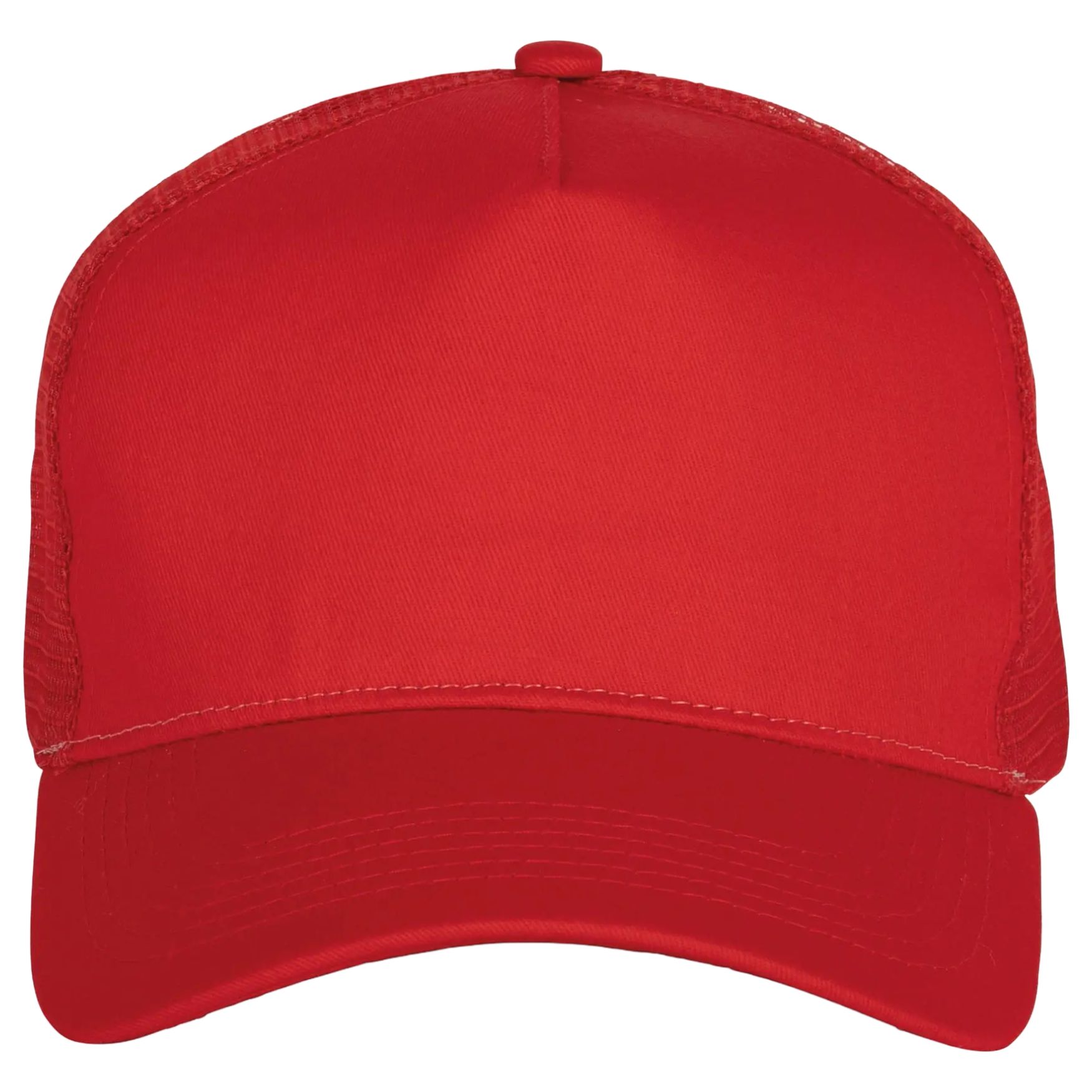 The 5-panel trucker cap combines a cotton front panel with polyester rear panels. The visor is pre-curved and the retro snapback closure allows a personalized fit. The composition is 100% cotton for the front panel.