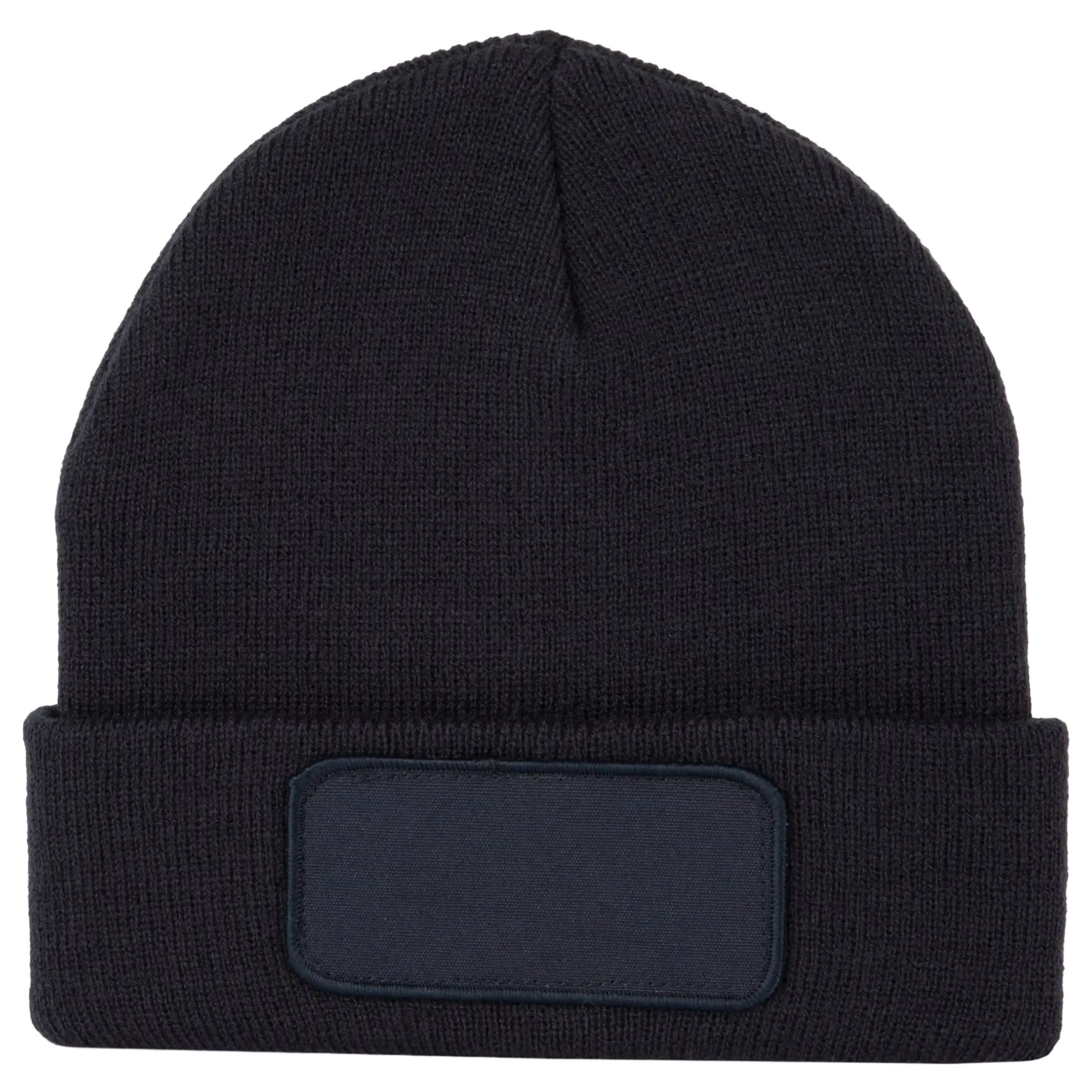 The hat is knitted in 100% soft acrylic with a cuff that ensures better hold. It has a cotton patch on the front allowing customization. This model is designed for everyday use with a simple and functional style.