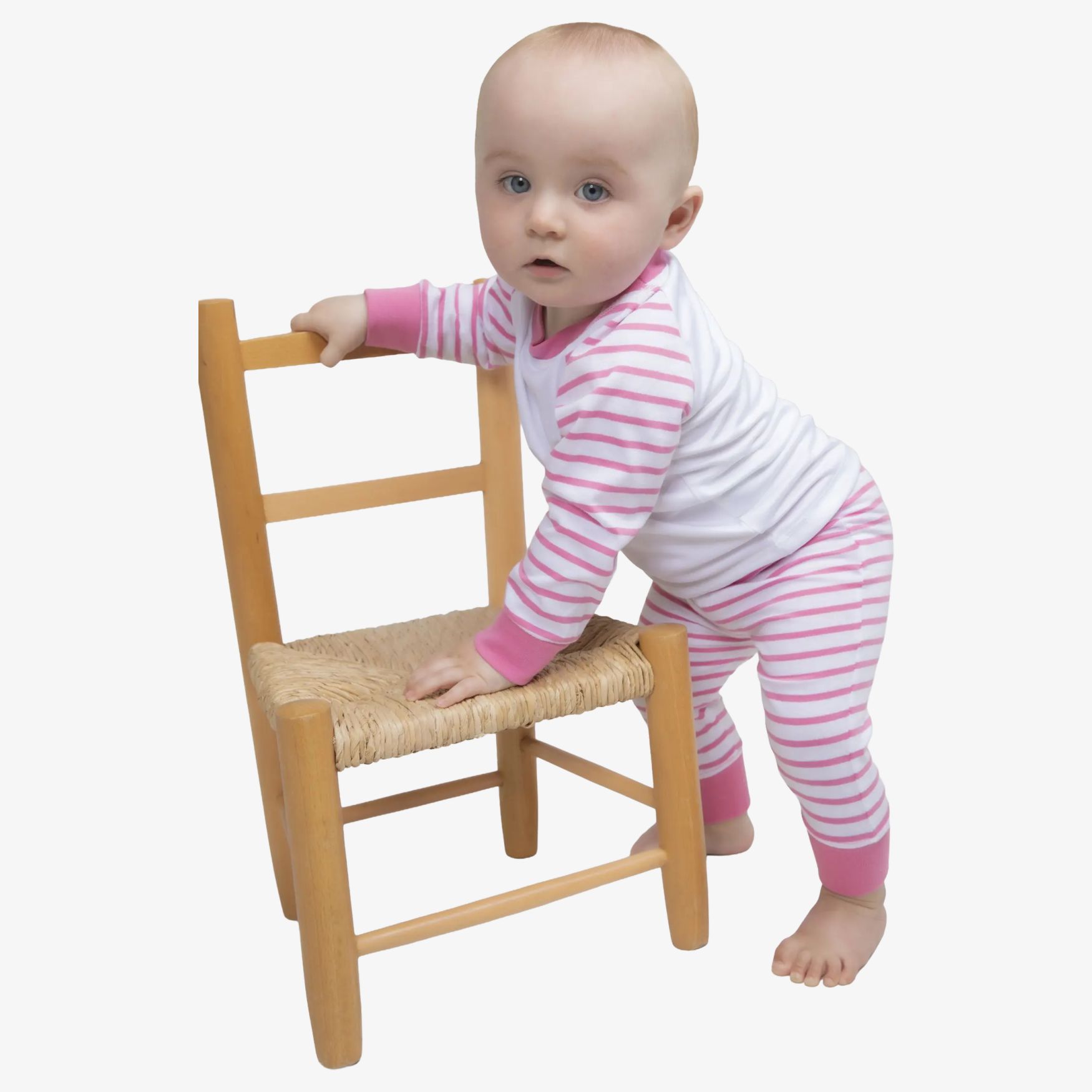 The Children s Striped Pyjama is a striped baby sleepsuit, designed for night-time use with a full-coverage shape and striped raglan sleeves. The front and back panels complete its structure for easy everyday wear.
