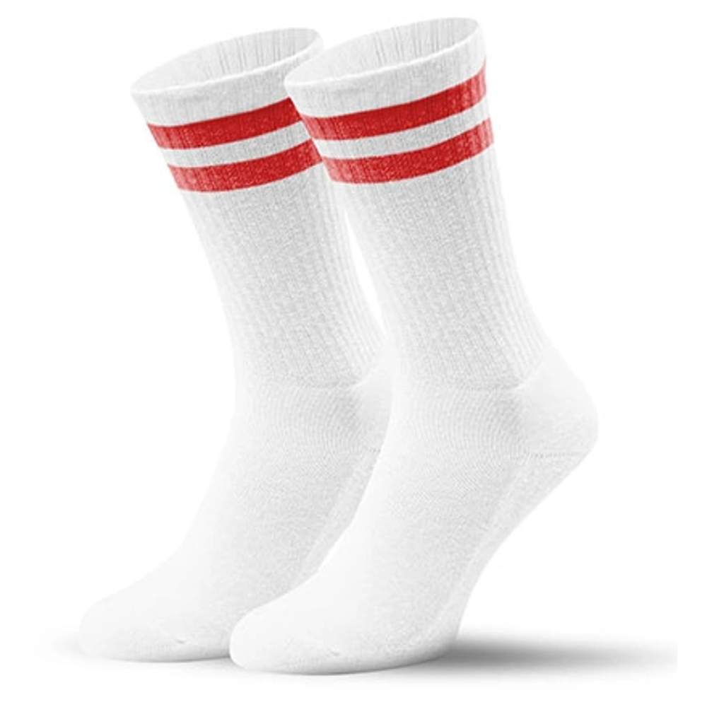 Comfortable and breathable socks, designed to provide optimal support and a sense of well-being. They feature two contrasting color lines above the ankle. The foot area is made of organic cotton for added comfort. The ribbed upper part is composed of recycled polyester, polyamide, and elastane.