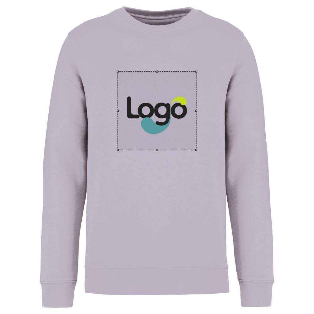 Unisex sweatshirt. Fitted cut. Brushed fleece 3 threads LSF (Low Shrinkage Fleece: pre-shrunk fleece). Half moon on the back, ribbed collar, hem and cuffs. Double stitching on cuffs, armholes, hem. Single stitching at the neckline. Neckband inside back. Composition : 85% organic peigned ringspun cotton and 15% recycled post-consumer polyester. This eco-friendly sweatshirt is ideal for customization with embroidery, adding a unique touch to your brand or event.