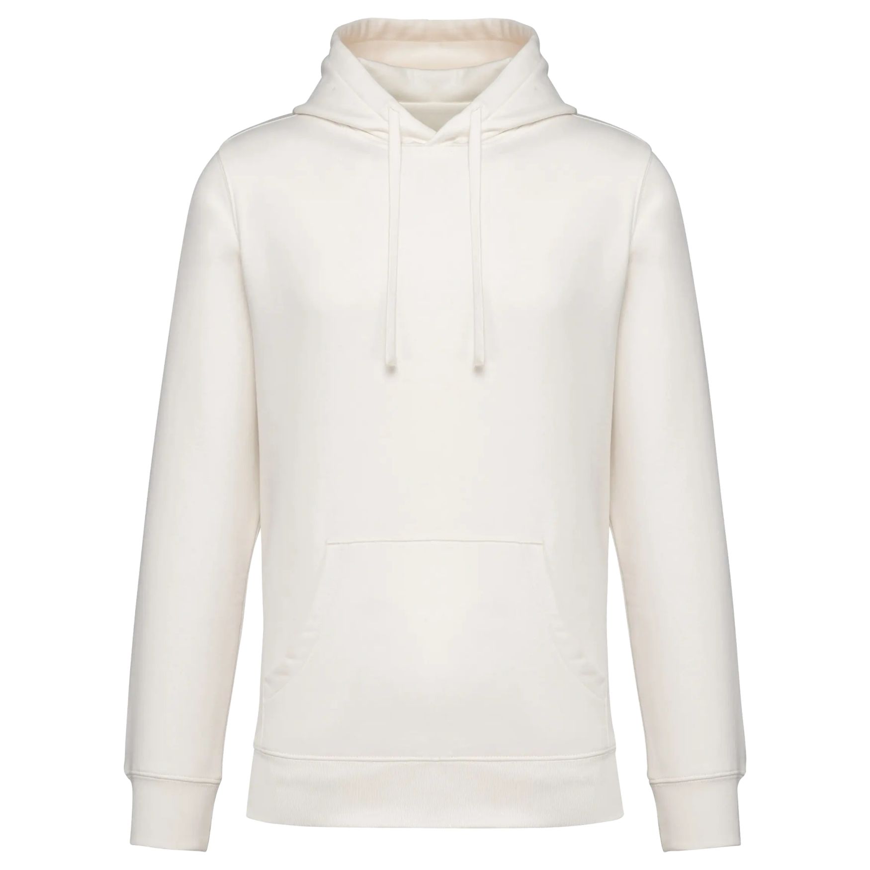 The Unisex Brushed Fleece Hoodie is a standard-fit sweatshirt with dropped shoulders, a lined hood, and a kangaroo pocket. 3-thread brushed fleece, neck tape, and ribbed finishes. Composition: 100% organic cotton. Customizable.