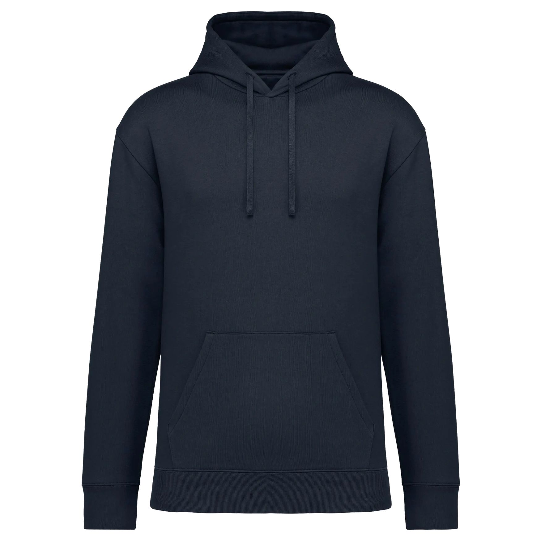 The Unisex Brushed Fleece Hoodie is a standard-fit sweatshirt with dropped shoulders, a lined hood, and a kangaroo pocket. 3-thread brushed fleece, neck tape, and ribbed finishes. Composition: 100% organic cotton. Customizable.