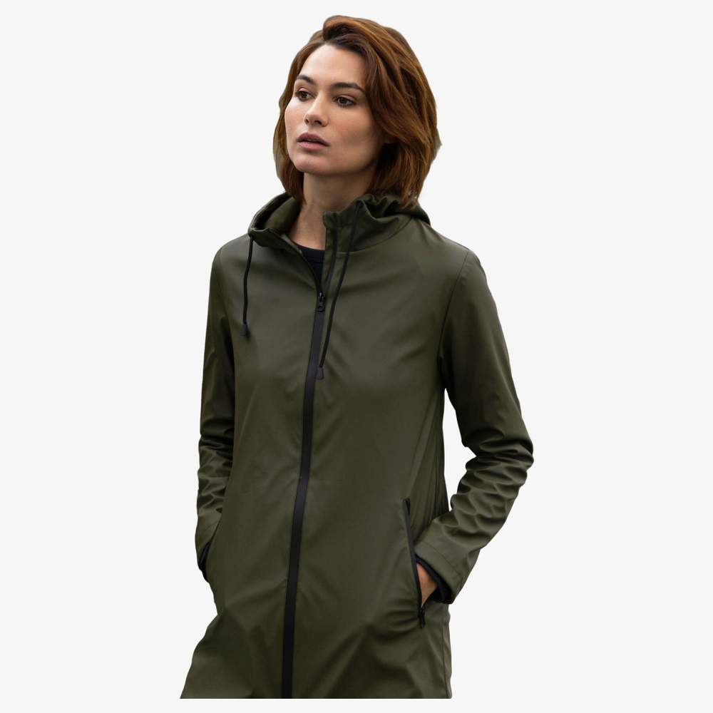 This waterproof parka for women offers effective protection against the elements. It is designed with a waterproof zip closure and features an adjustable hood as well as drawstrings for a customized fit. It includes two practical pockets with zip fastenings, and has a back vent finish. The seams have been heat-sealed to enhance waterproofing. The main fabric is composed of 100% polyester with a PU coating for waterproofing of 5000mm. The lining is 100% polyester 210 taffeta, while the hood lining is a blend of 80% polyester and 20% cotton.