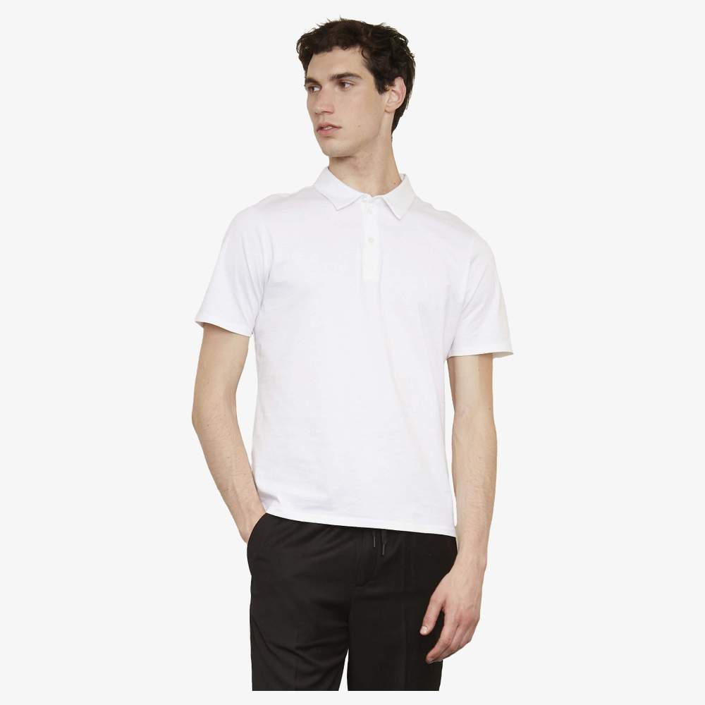 Mercerized cotton jersey polo shirt for men, designed for comfortable wear and a neat appearance. It features a classic cut with short sleeves and a three-button placket in the same tone. The collar is made of jersey for added comfort. The hem of the sleeves and the body are finished with double needles for increased durability. This polo shirt stands out with its soft material and refined texture, ideal for casual occasions or to complement a more formal outfit.