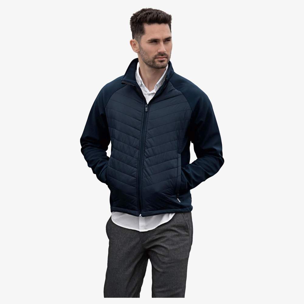 Bloomsdale for men is a versatile hybrid vest with a sporty cut designed to be worn both at work and outside. As elegant as it is practical, this vest is an indispensable addition to your wardrobe. The softshell sleeves and side panels provide stability without adding excessive weight or bulk, while the lightweight Sorona® Aura fiber insulation makes this sportswear a top choice for everyday wear. This model is comfortable enough to be worn all day, while being elegant enough to fit the athleisure trend. Reversible zip closure with metal pull bearing the logo. Interior of the cuffs in stretchable jersey lycra. Quilted Sorona® Aura padding. Recycled fabric. Water-repellent treatment. Composition: outer fabric 100% recycled nylon - 95% recycled softshell, 5% elastane; padding: 100% polyester Sorona® Aura (AURA insulation is composed of 30% biological material). This vest offers the possibility of customization with embroidery to integrate your logo or a personalized visual.