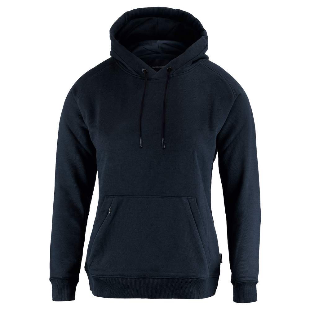 The casual Fresno hoodie for women is comfortable, made from a durable blend of long-staple organic combed cotton, to finish off a relaxed but sporty look. This casual sweatshirt combines classic elements such as a kangaroo pocket with practical details, like a partially invisible zippered front pocket and a double-layered hood. Double-stitch reinforcement. Double-layered hood. Invisible zipper on the front pocket.
