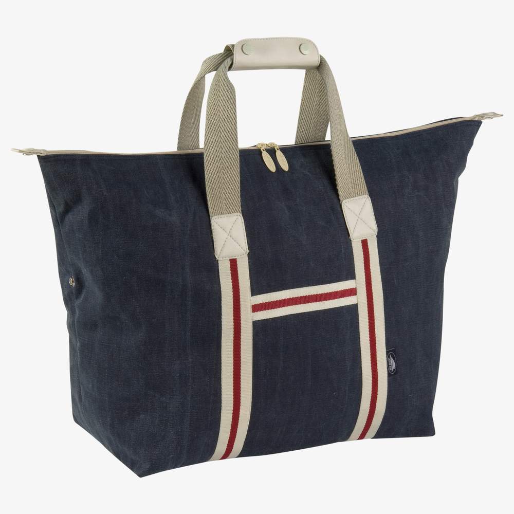 Heavy washed cotton canvas shopping bag, offering ample storage space for groceries or personal belongings. Its robust design ensures durable use. It is equipped with an inner zip pocket to secure small items. This bag combines functionality and style for daily use.